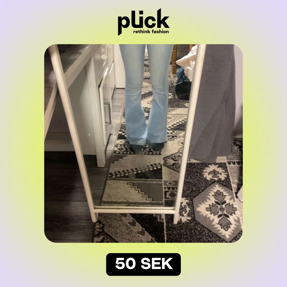 Säljer ett par ljusblå bootcut jeans i bra skick. De är högmidjade och har en snygg utsvängd stil,säljs pågrund av att jag behöver rensa min garderob, alla jeans jag säljer är använda 3-5 gånger