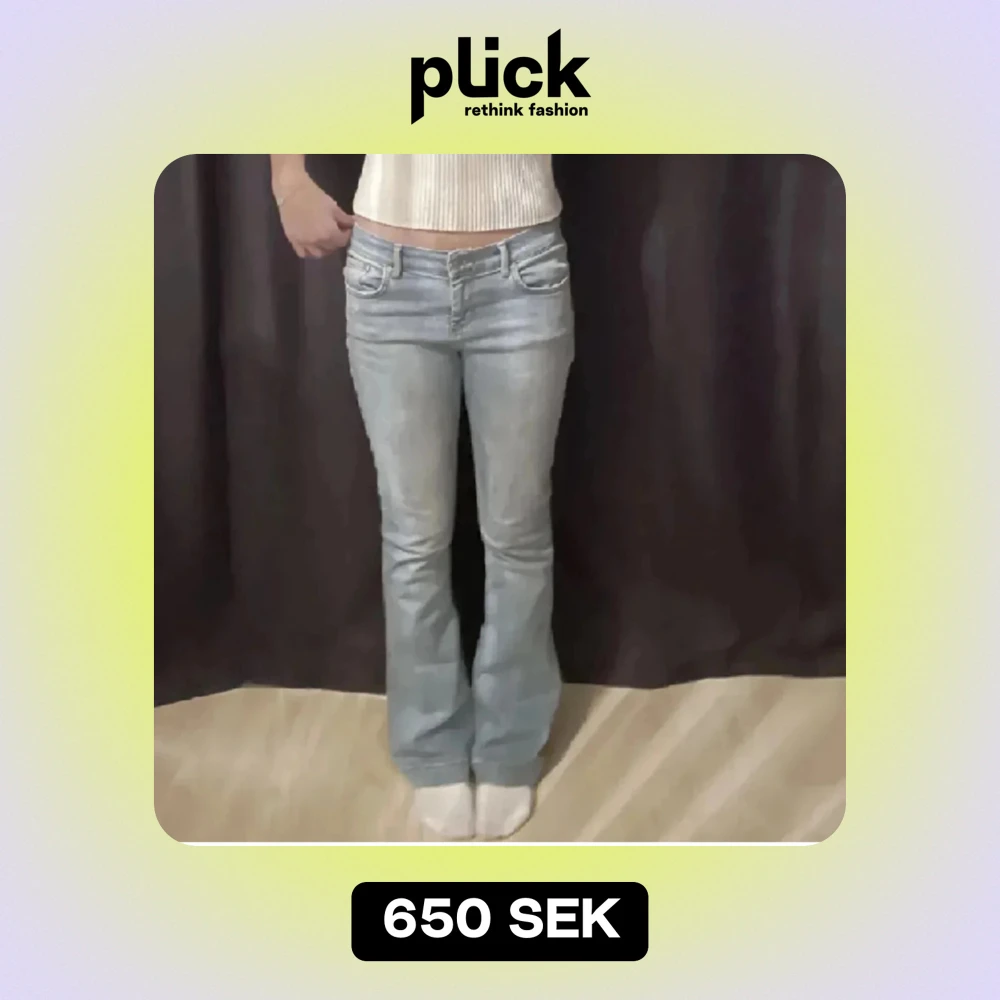 Säljer dessa ljusblå lågmidjade bootcut jeans med midjemåttet 36 cm och innerbenslängden 86 cm💗skriv vid frågor