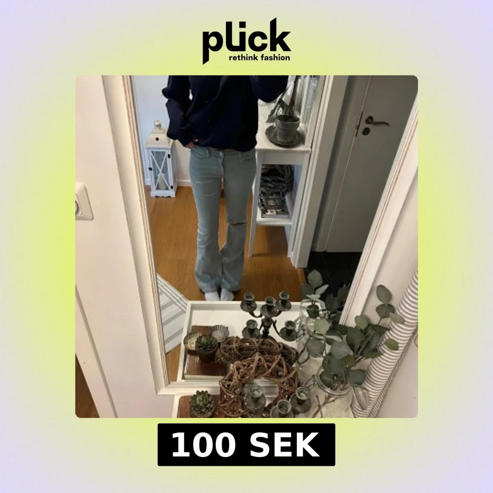 Säljer ett par ljusblå jeans från weekday med slitningar. W25 L34 (innerbenslängd 84cm)