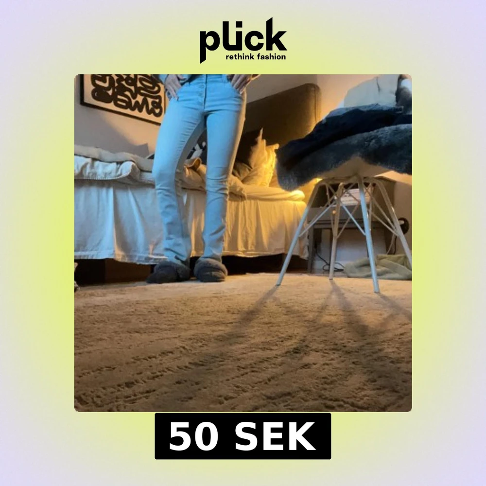 Säljer ett par ljusblå jeans med bootcut passform. Snyggt klassiskt snitt som sitter tajt upptill och släpper ut vid anklarna. Perfekta för dig som gillar en retro vibe och vill ha ett par jeans som sticker ut lite extra. Fyra knappar upptill