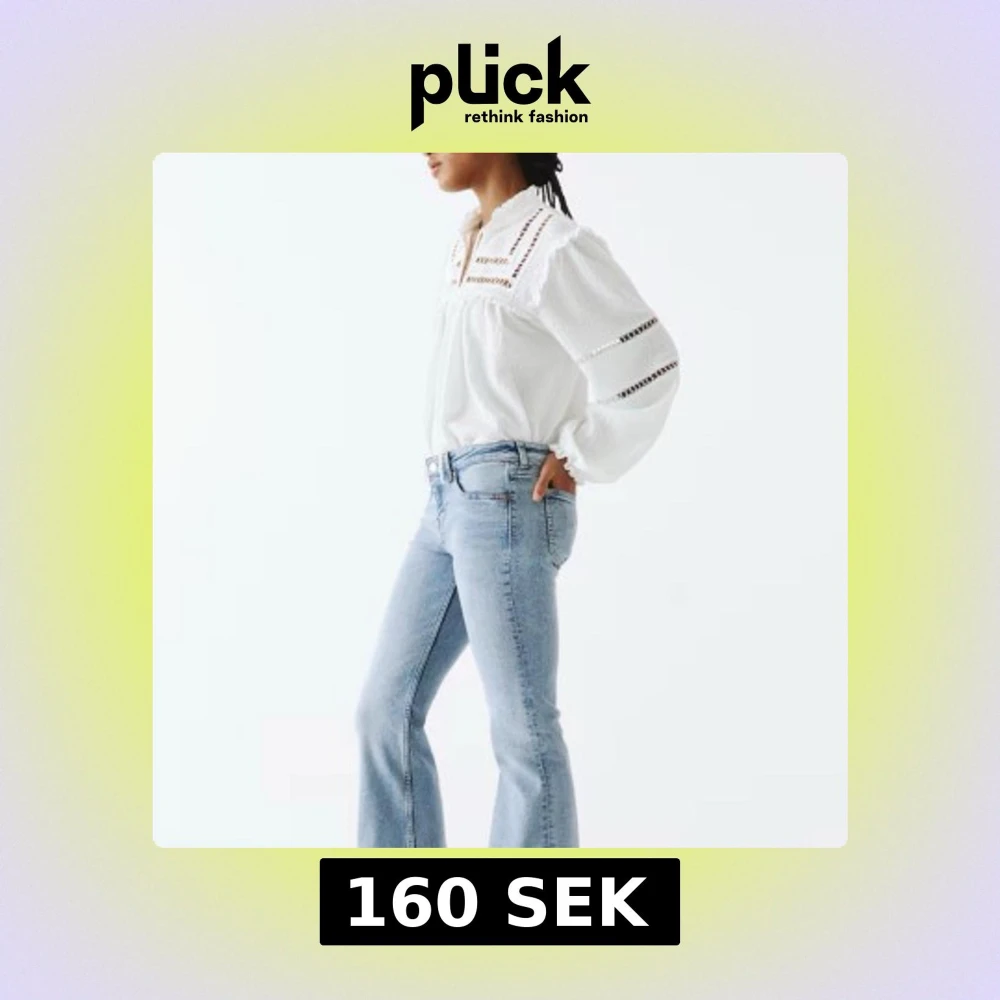 Säljer ett par ljusblå bootcut jeans från hm med innerbenslängd 73 cm💕 hör av dig vid frågor eller intresse 💕
