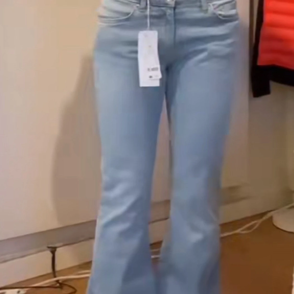 Säljer ett par ljusblå bootcut jeans från Gina med klassisk femficksdesign och låg midja. Jeansen har en lätt utsvängd passform nertill och är perfekta för en avslappnad men trendig look.