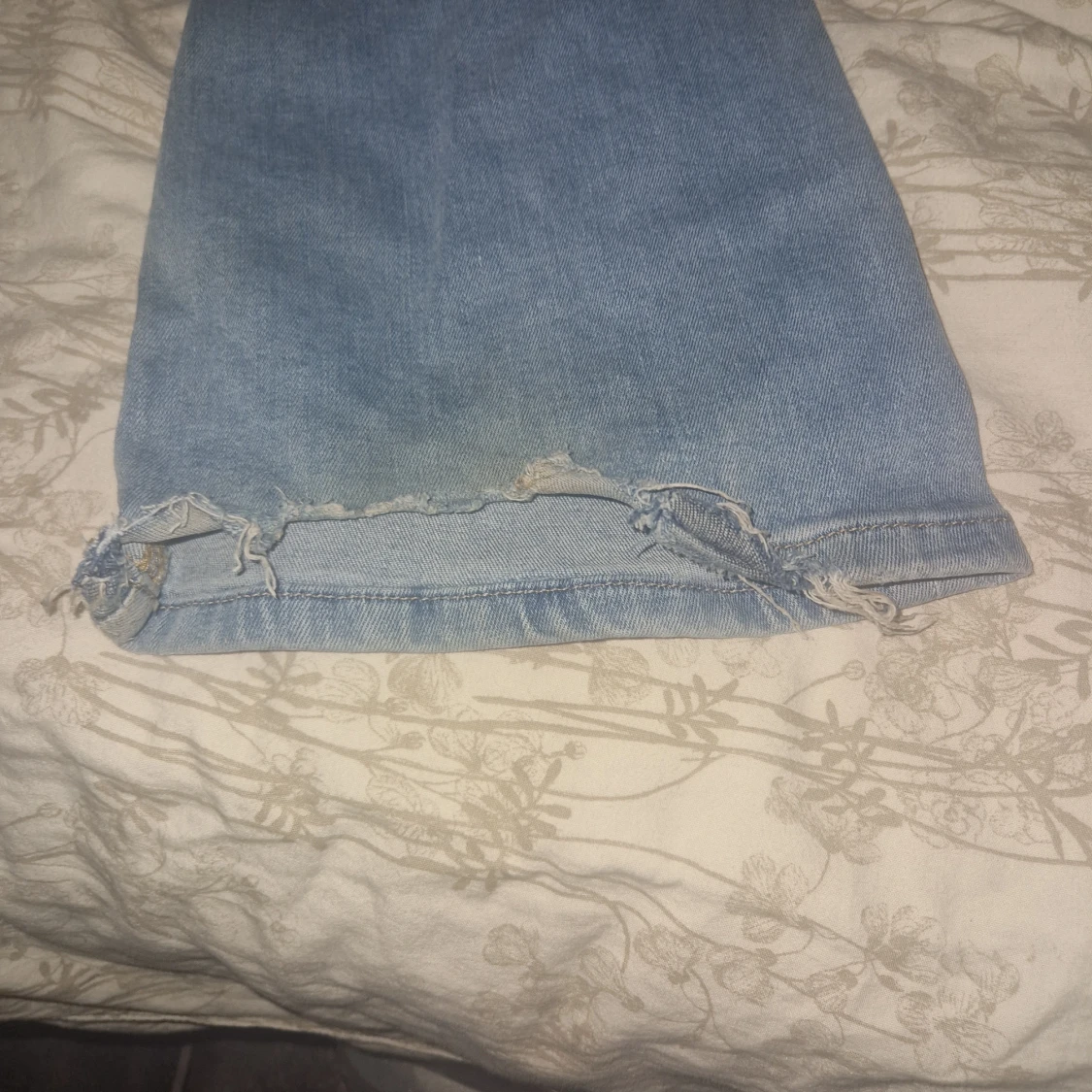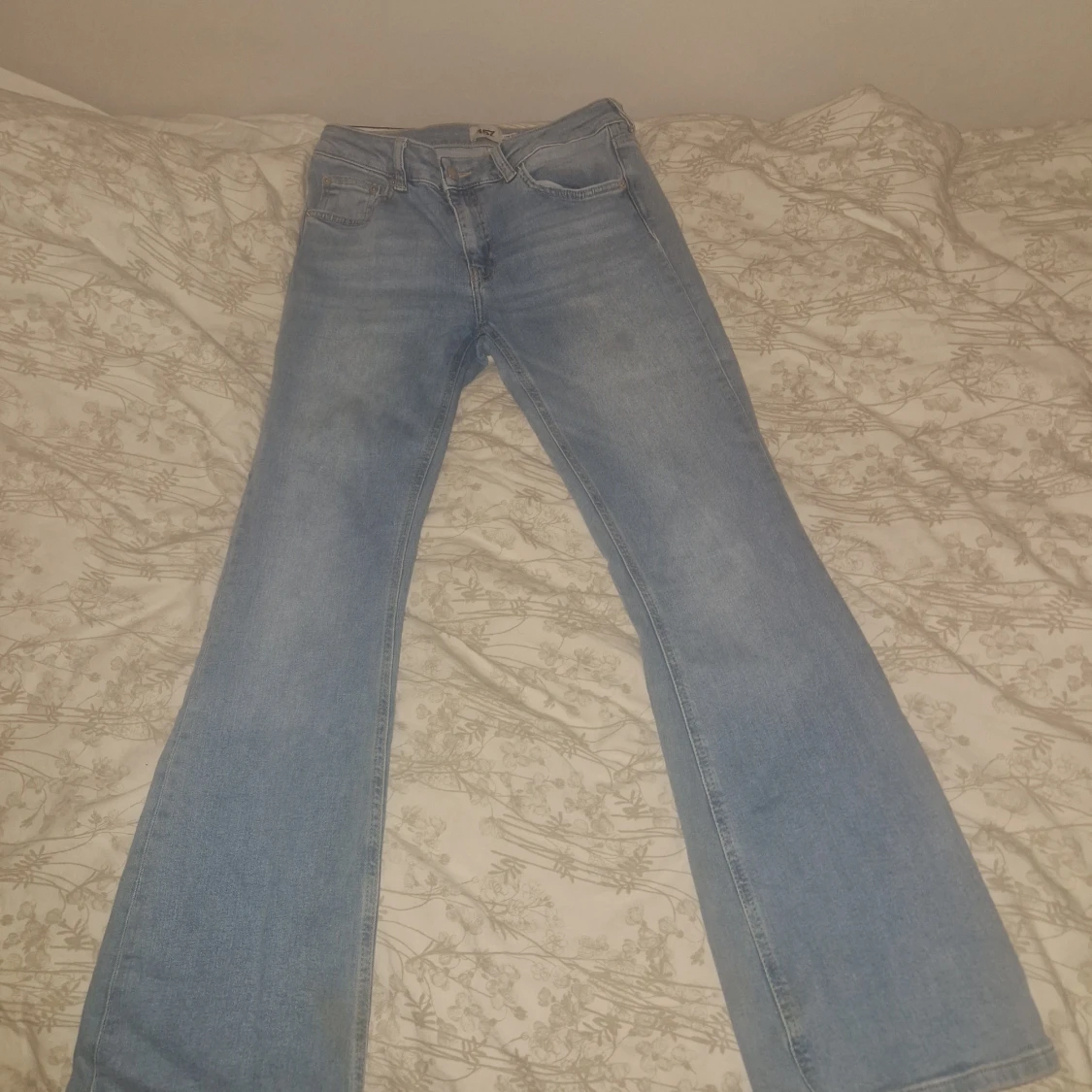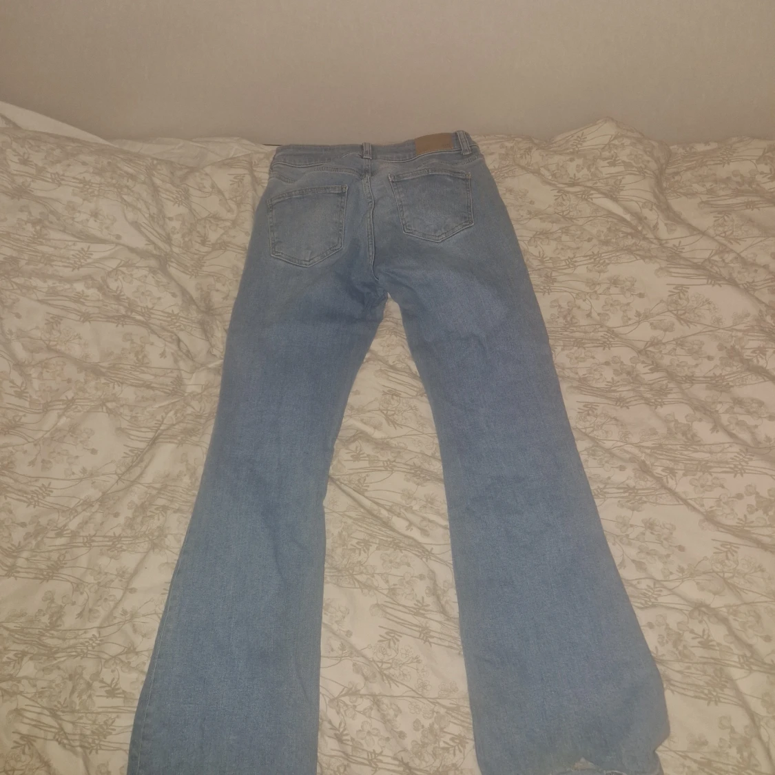 Säljer ett par ljusblå jeans med bootcut passform och är midwaist. Jeansen har klassisk femficksdesign och är tillverkade i mjukt denimtyg. Perfekta för dig som gillar en avslappnad och retro vibe. Är sänder längst ner på bena men går lätt att fixa❤️