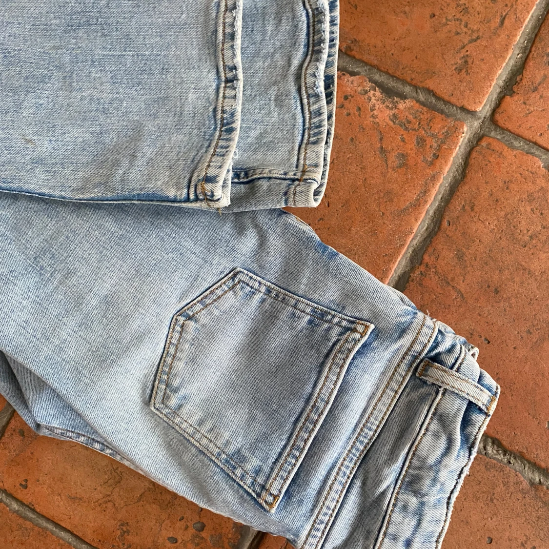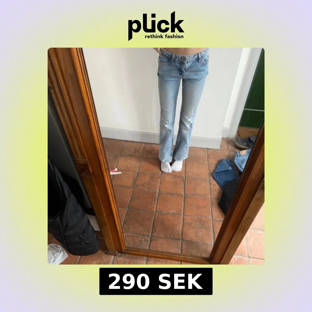 Snygga ljusblå lowwaist bootcut jeans! Små slitningar längst ner vid hälen som visas på bild 3 Midjemått:33 det går att justera midjan! Innerbenslängd:66
