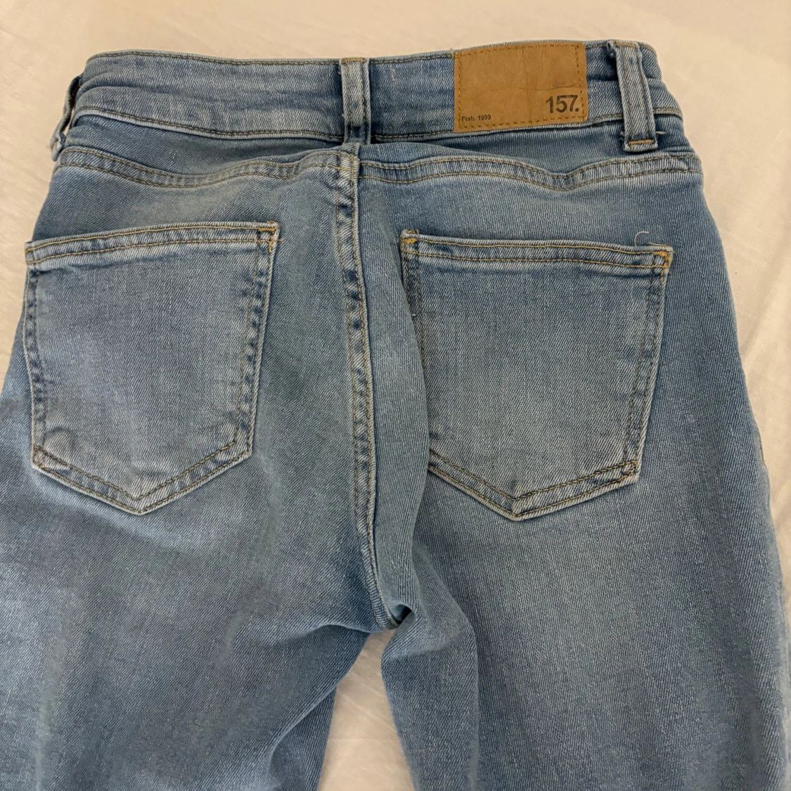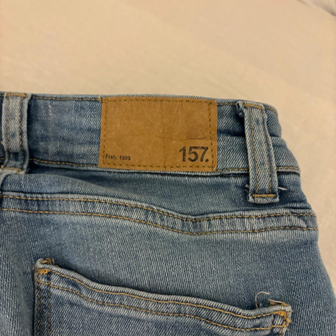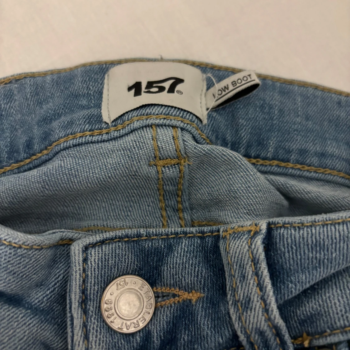 Snygga ljusblå bootcut jeans från 157 med låg midja. Klassisk femficksdesign och knappgylf. Perfekta för en avslappnad stil.