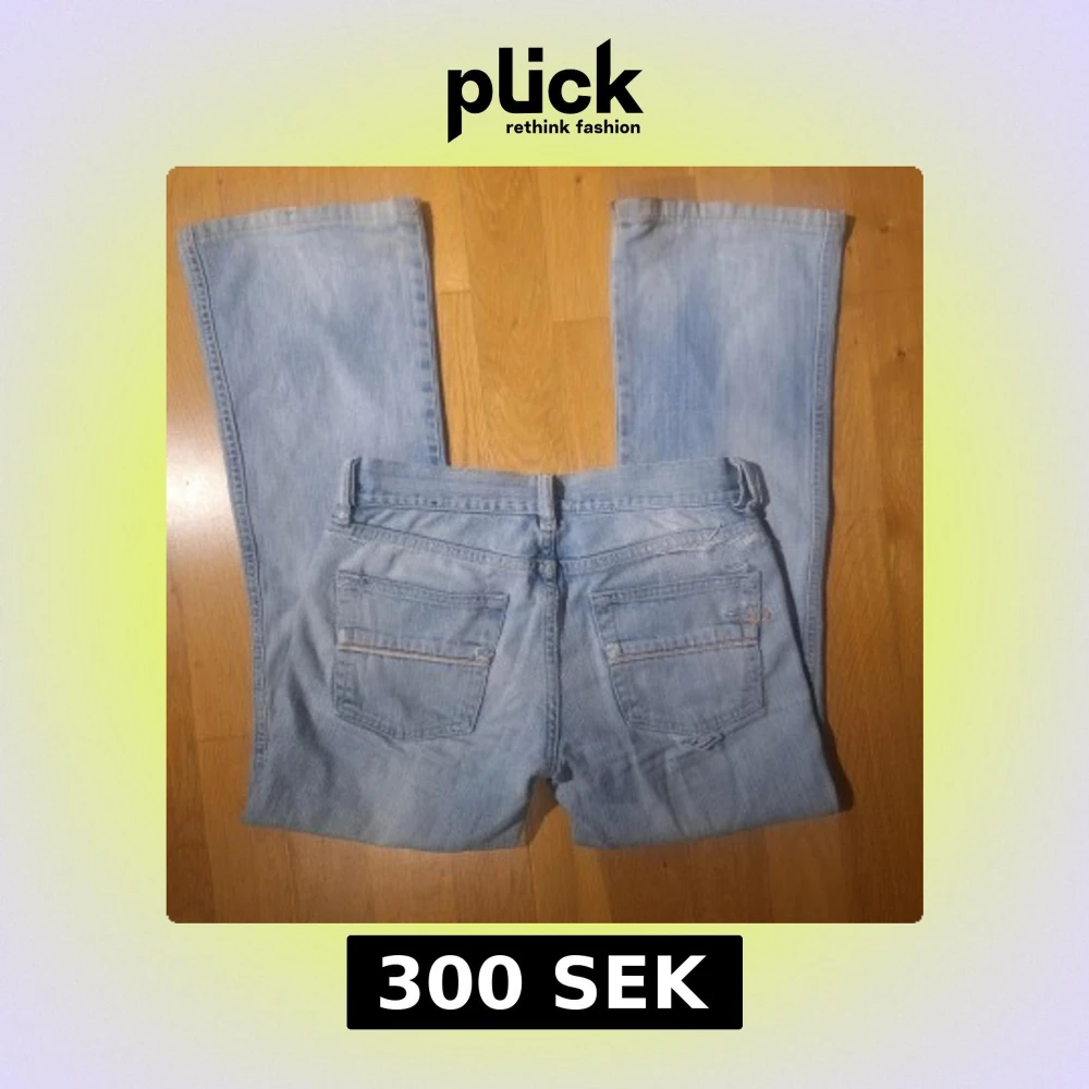 Jättefina bootcut diesel jeans i stl 25 vilket motsvarar xs ungefär. Innebenslängd: 68 cm Midjemått tvärs över: 34cm Defekter syns på två sista bilderna, går att sy det till nytt och defekter vid benen är inget synligt när man har på sig dem! Skriv om du har frågor!