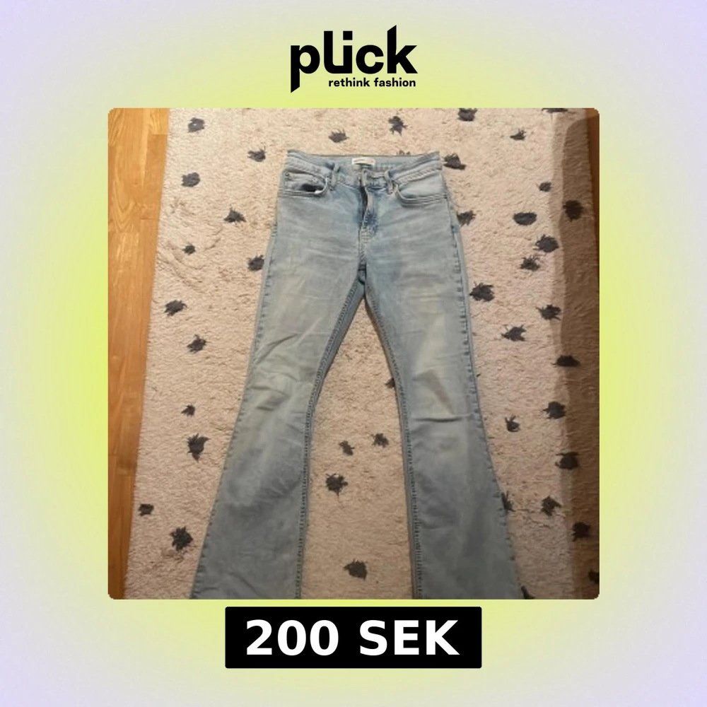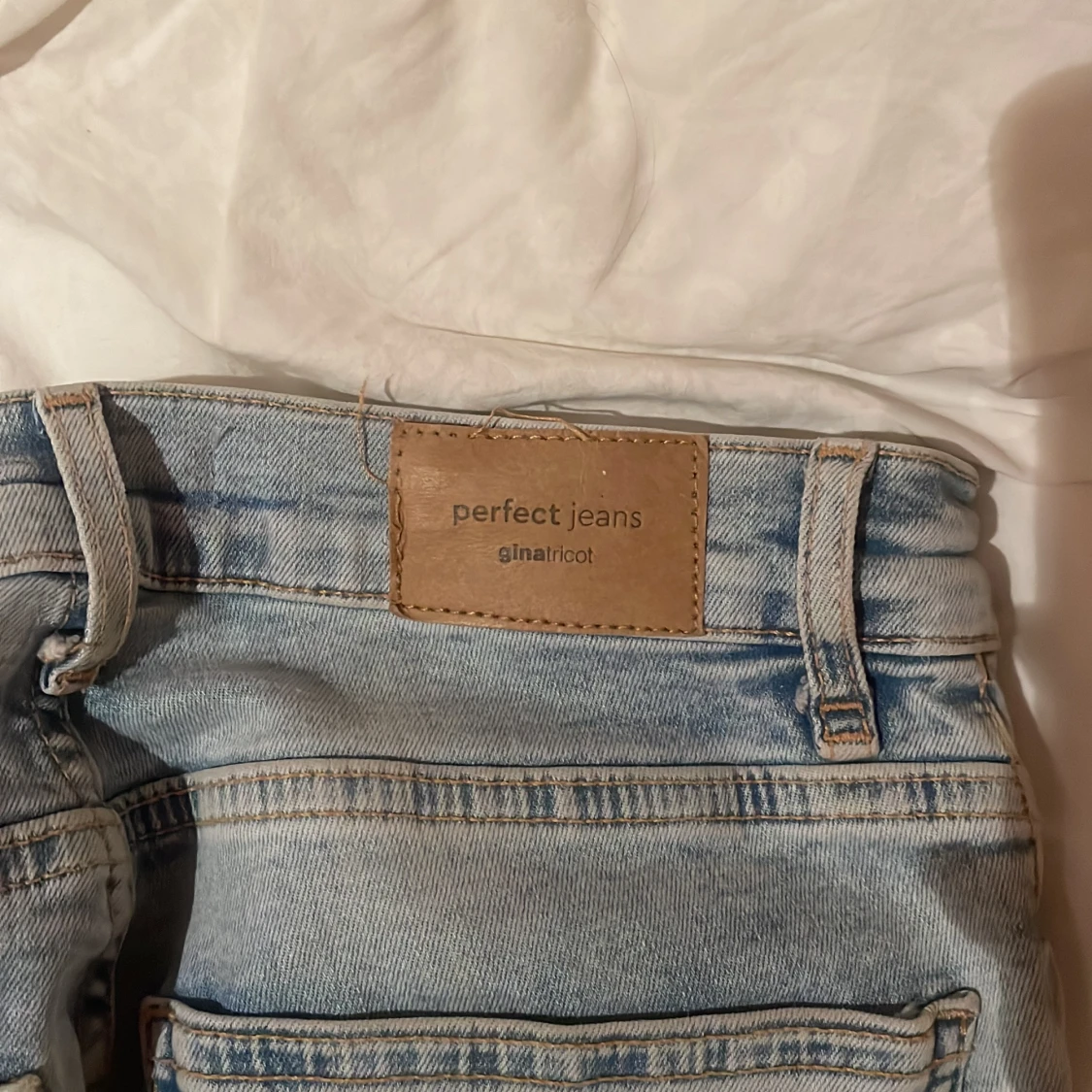Säljer ett par ljusblå bootcut jeans från Gina Tricot, modell Perfect Jeans. De har klassisk femficksdesign, ganska låg midja