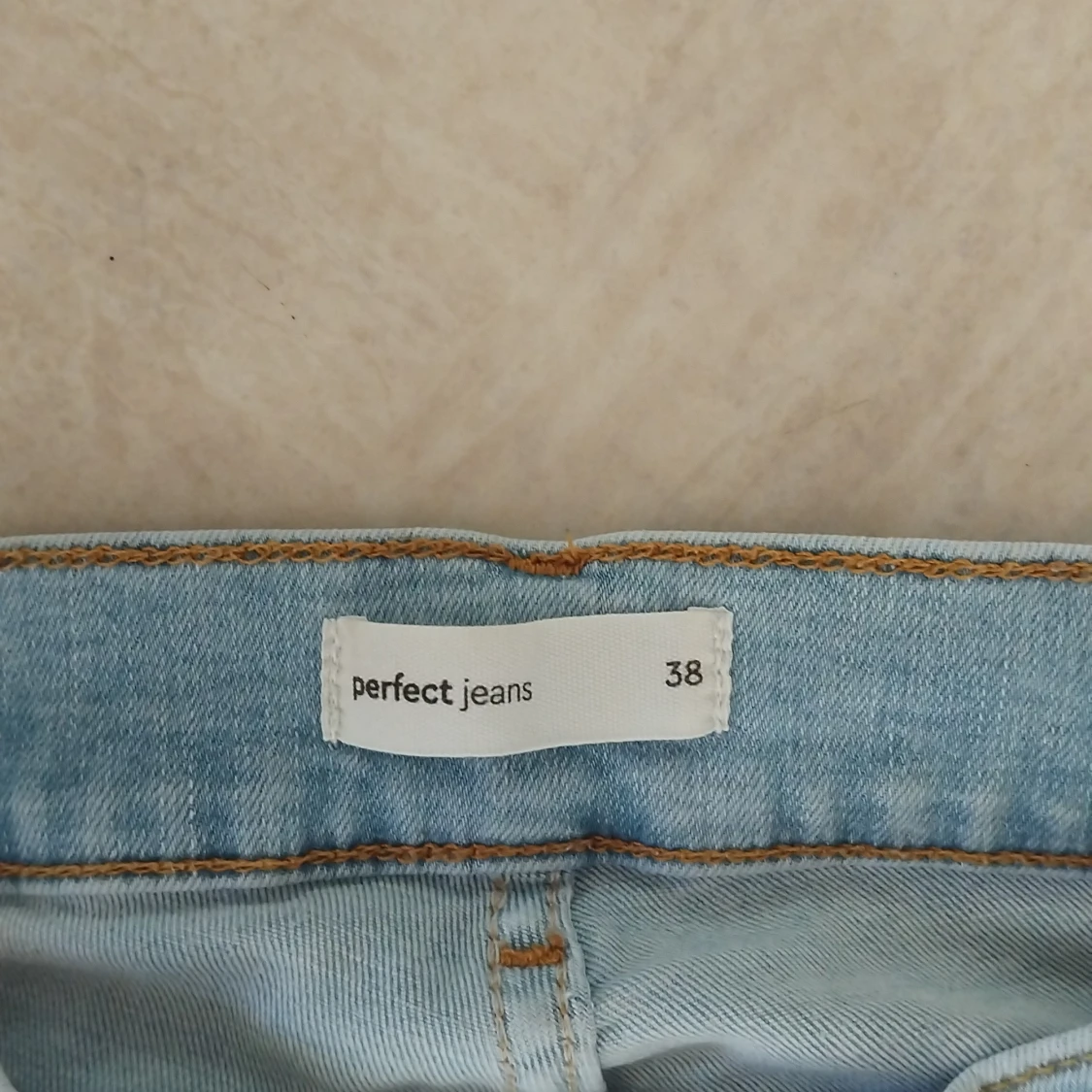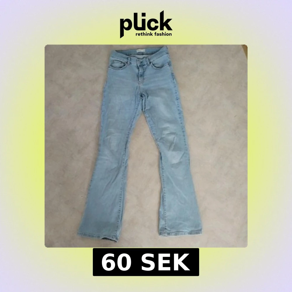 Snygga ljusblå bootcut jeans från Gina Tricot, modell Perfect Jeans. Låg midja och klassisk femficksdesign. Jeansen är i mjukt denimtyg och har en riktigt fräsch 2000-talsvibe.