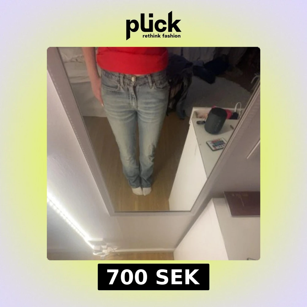 Säljer ett par ljusblå low waist bootcut jeans från Lipp. Mammas gamla och säljs därför inte längre. Säljer pga att de är för små. Skriv om fler frågor. 💓