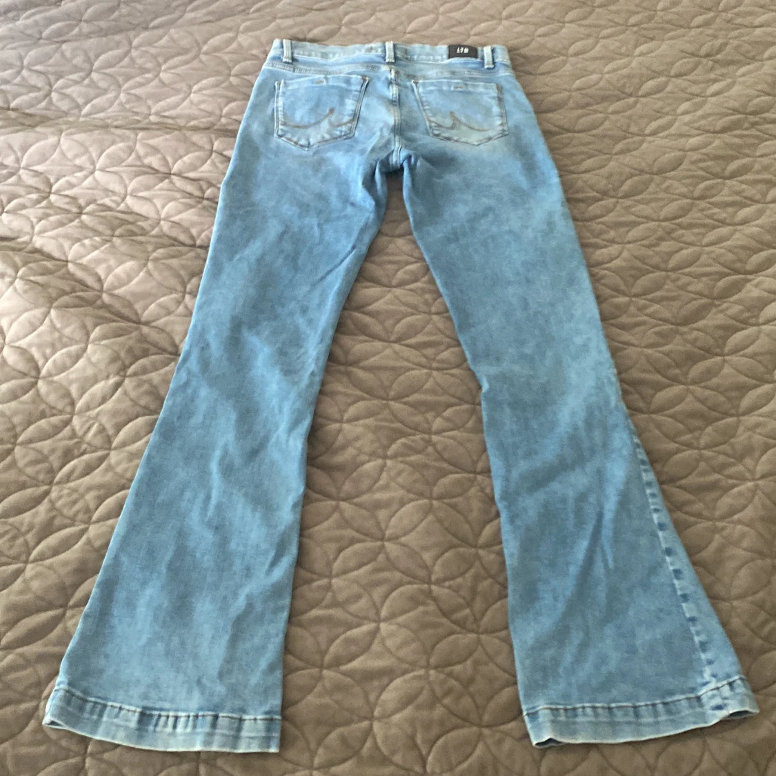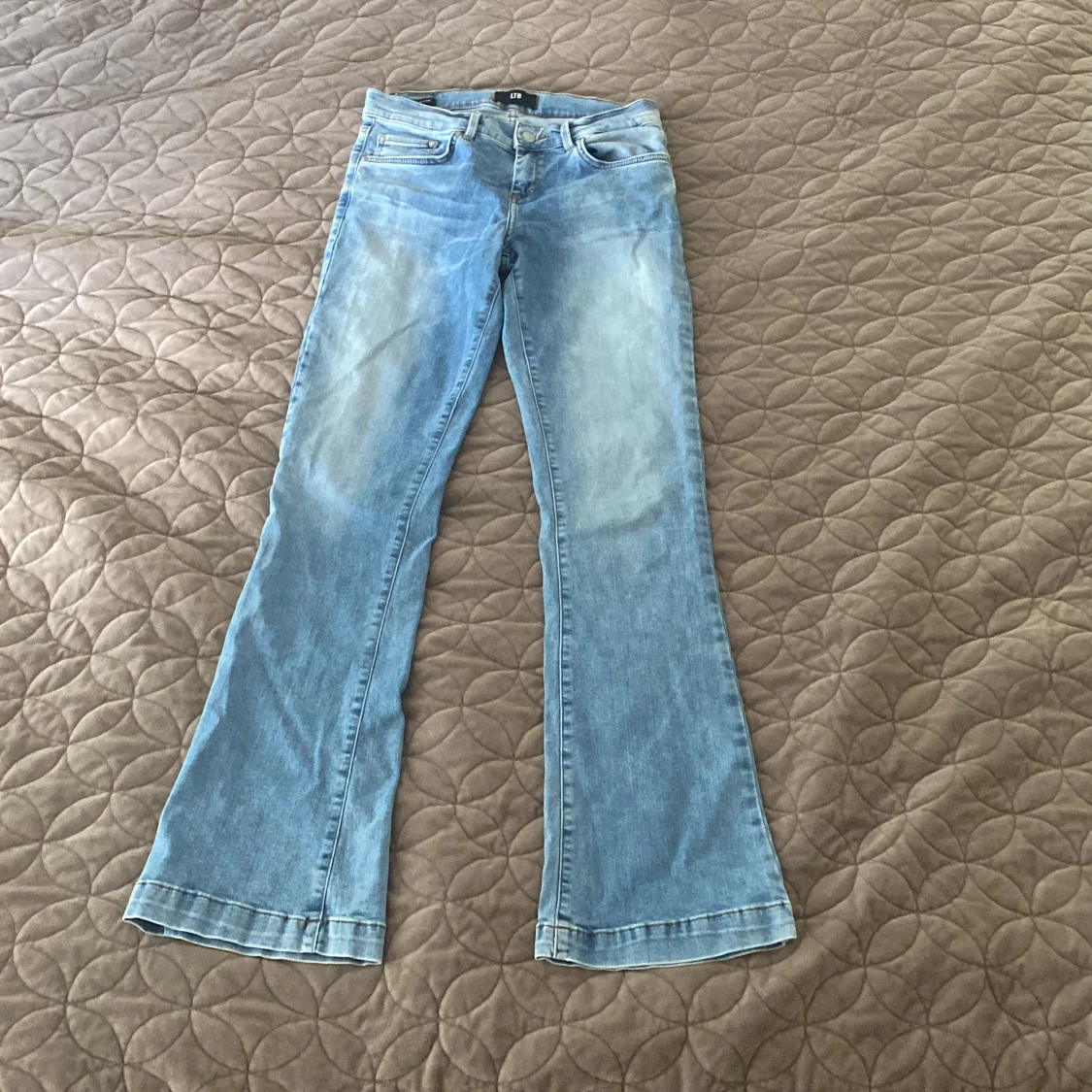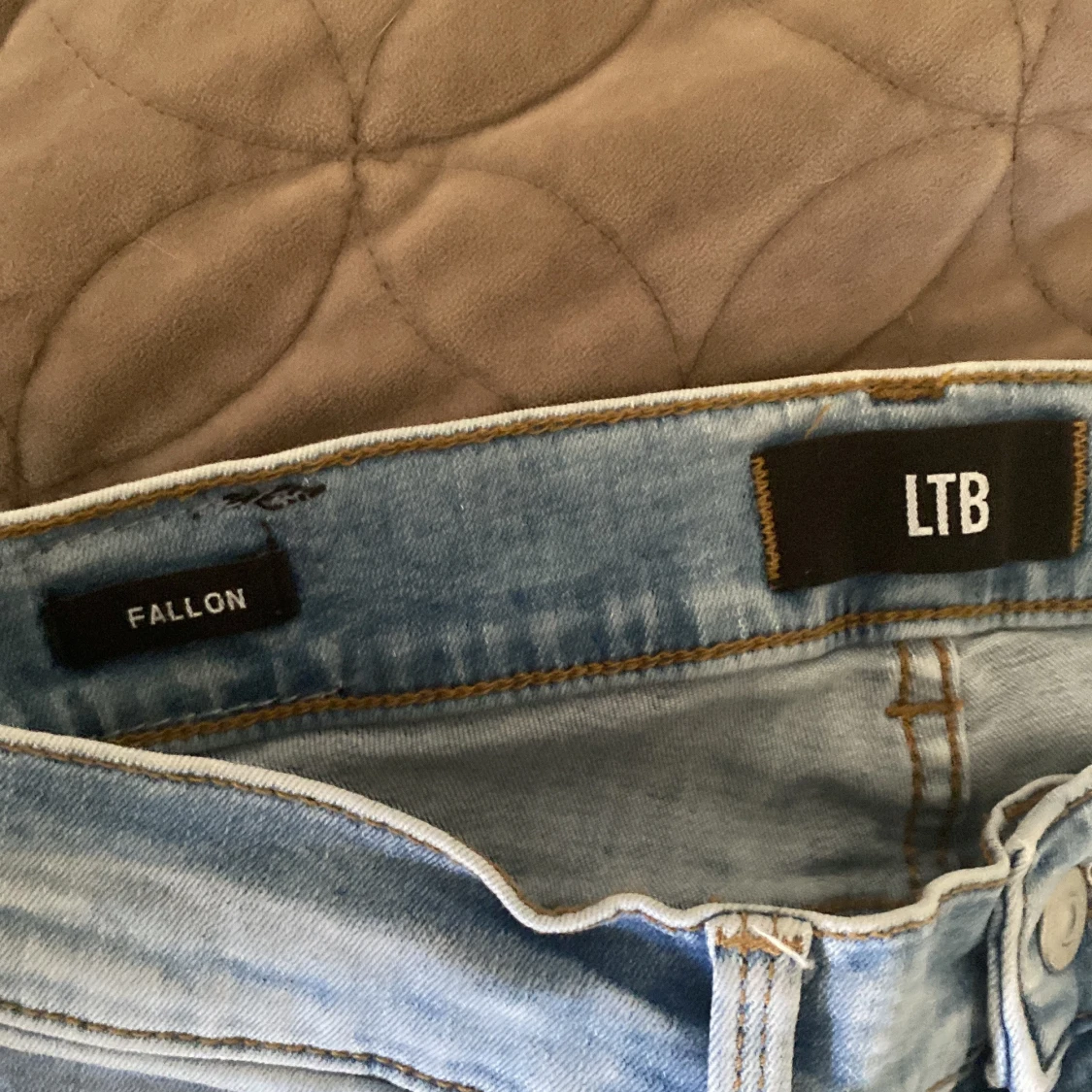 Säljer ett par ljusblå jeans från LTB, modell Fallon. Jeansen har snyggt utsvängda ben och normal passform. Tillverkade i mjukt denimtyg. Storlek: W27 L32. Jeansen är i bra skick, bara använda några få gånger.