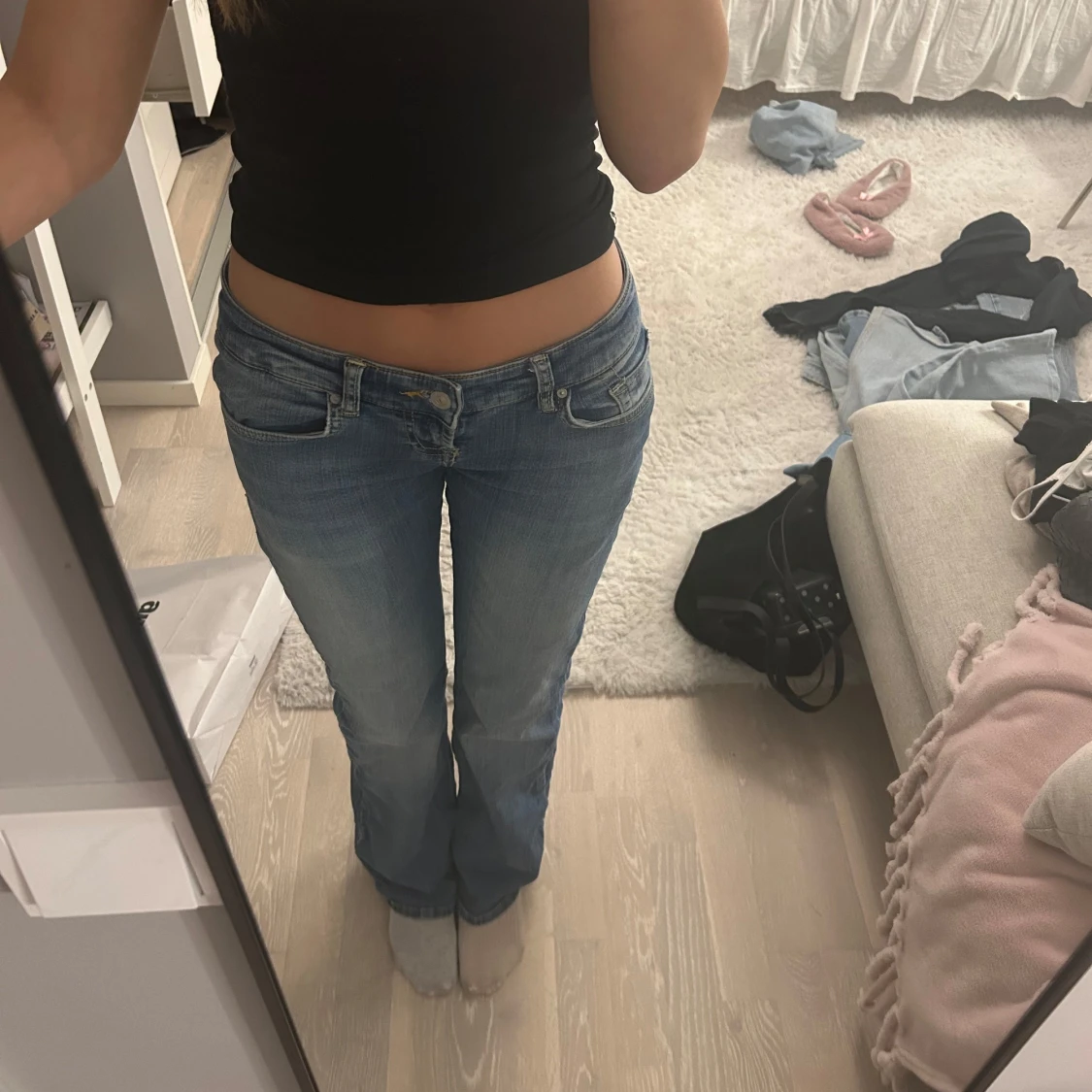 Säljer ett par ljusblå jeans från LTB med bootcut-passform och låg midja. Jag är 165cm💕