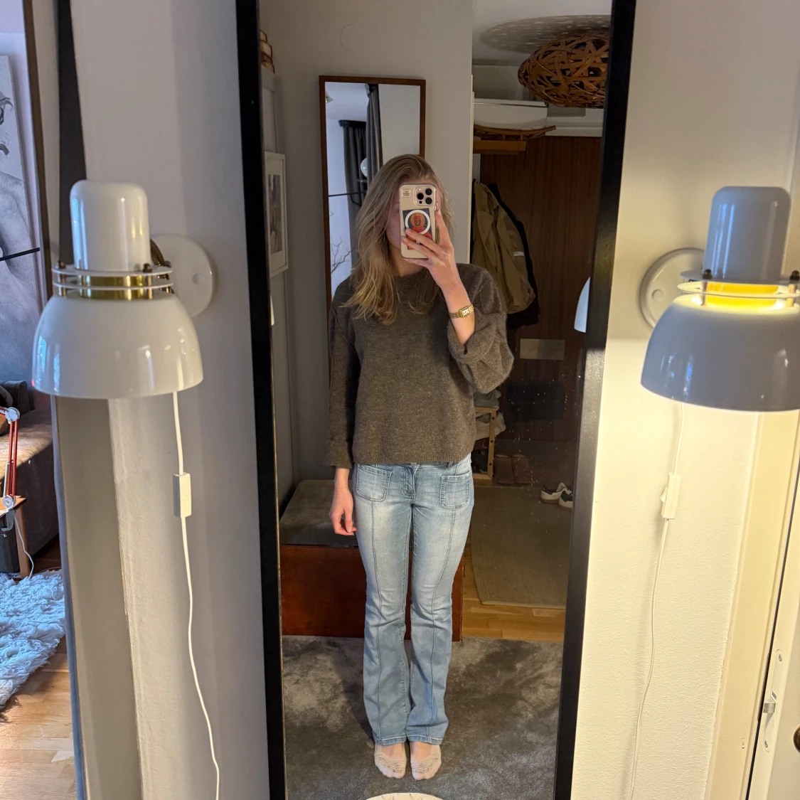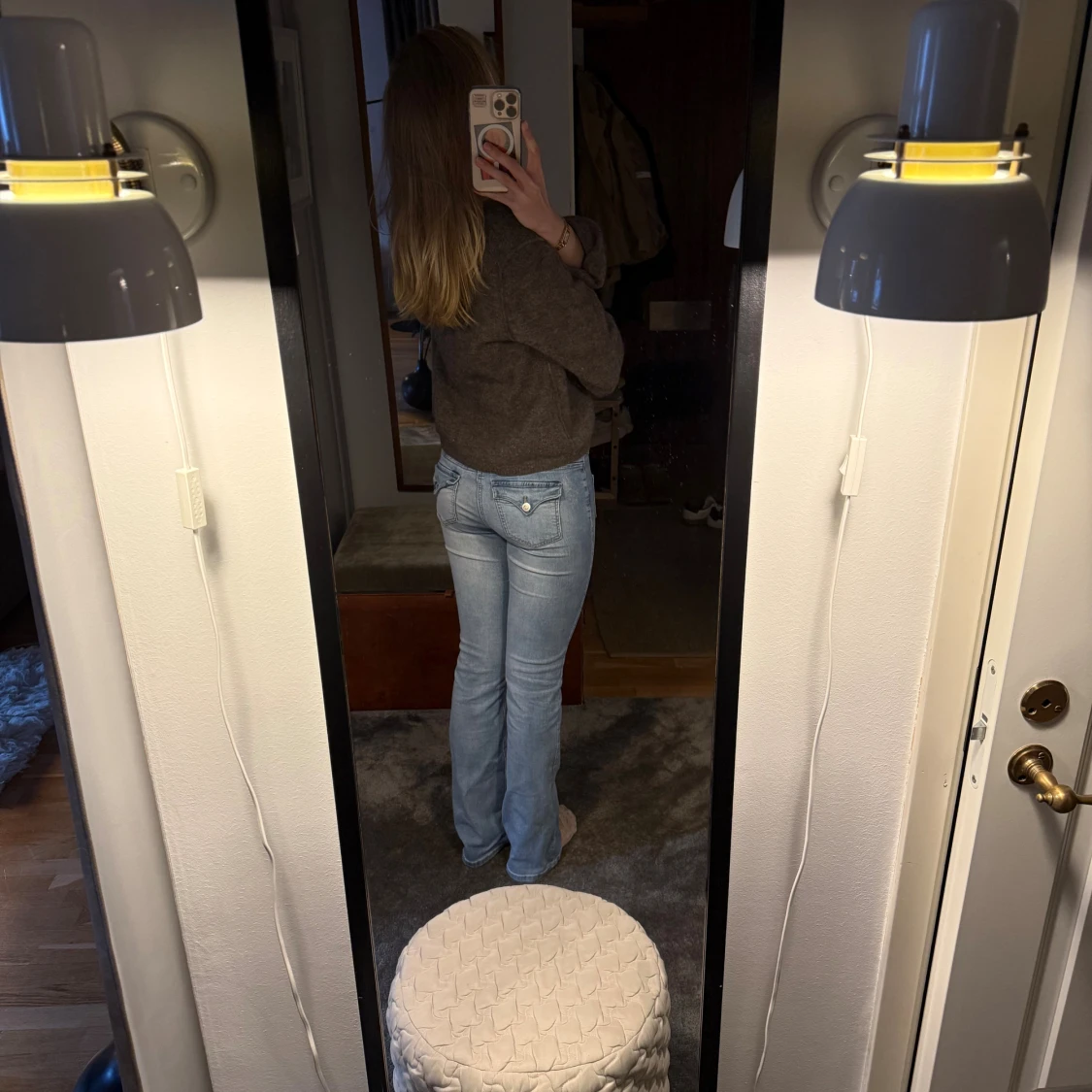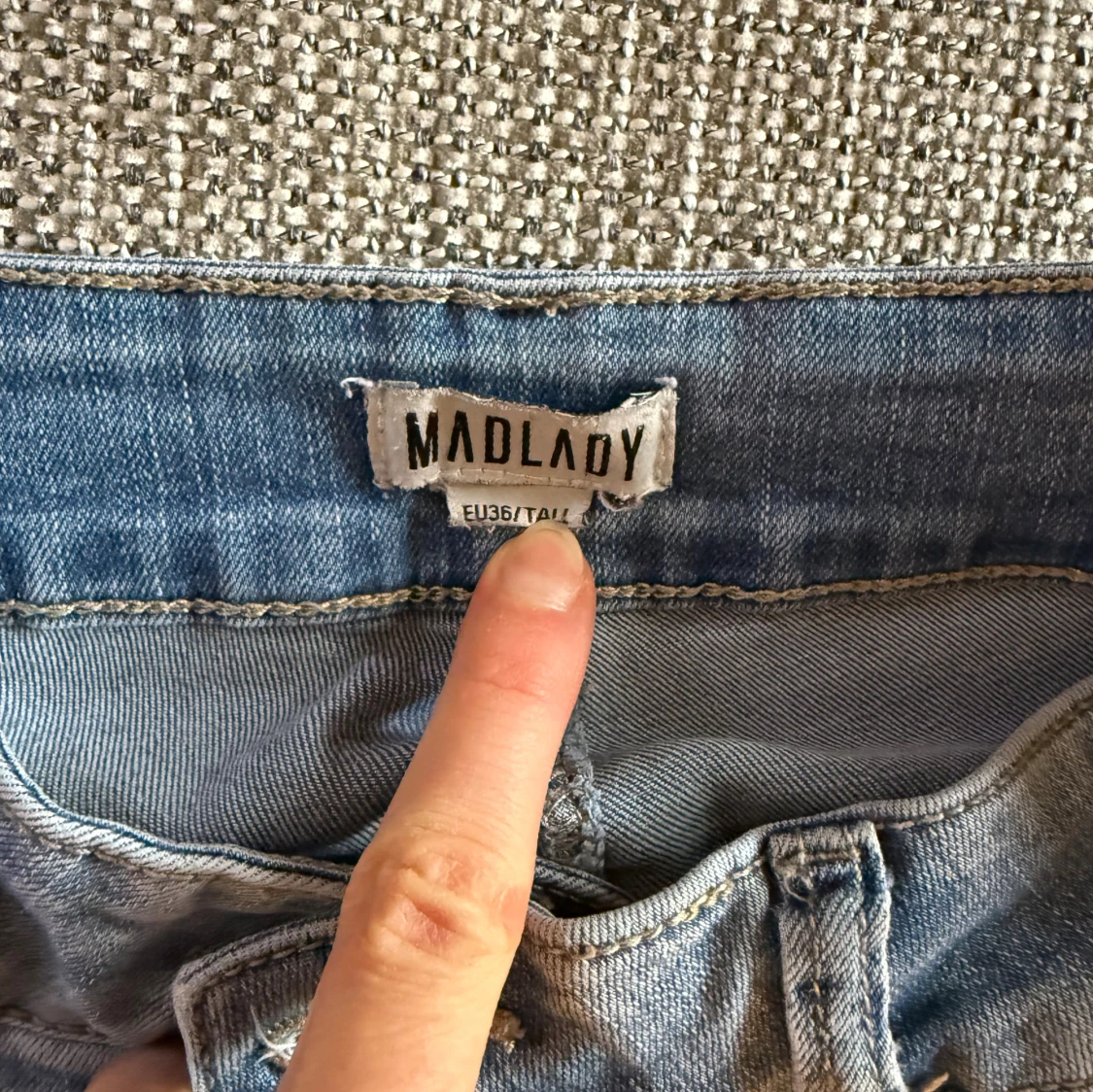 Säljer ett par ljusblå bootcut jeans från Madlady.