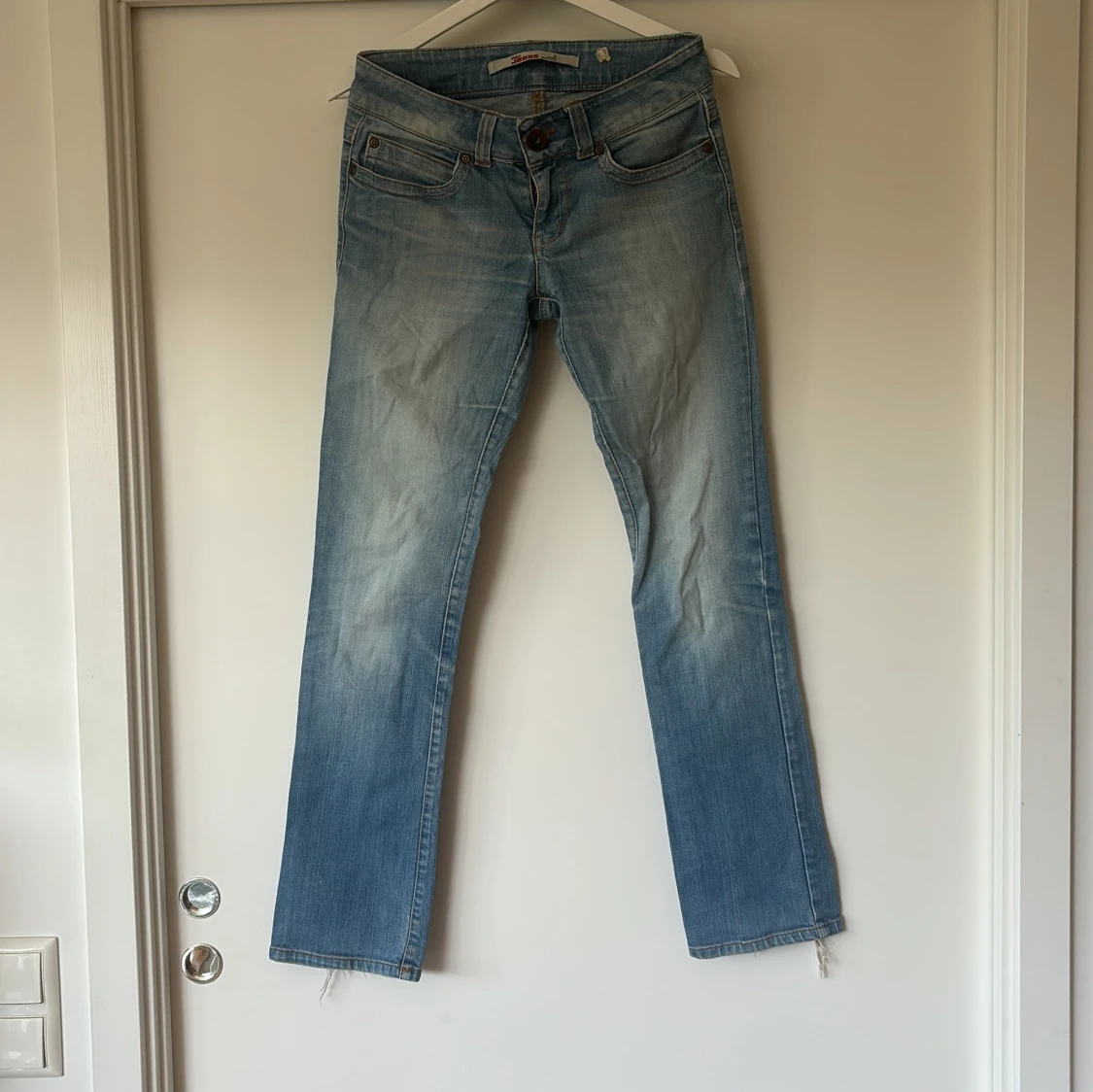 Snygga ljusblå jeans från Only med rak passform. Jeansen har klassisk femficksdesign, slitna detaljer vid benslut och en lätt tvättad look. Tillverkade i jeansmaterial med en bekväm midja och subtila kontrastsömmar.