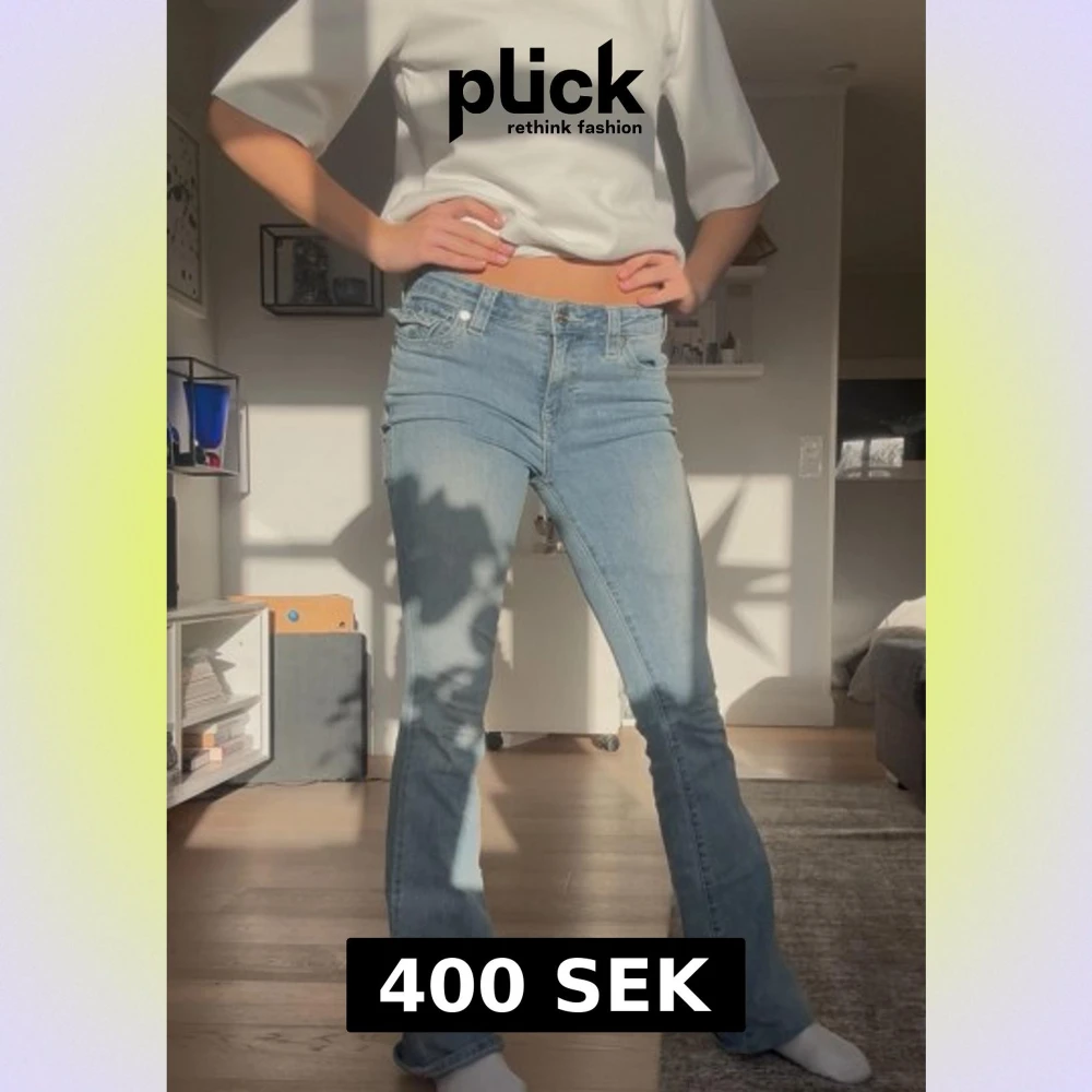 Snygga ljusblå jeans från True Religion. Dem är mid waist men går utmärkt bra att sy ner. Använt max 2 gånger där av säljes. De är uppsydda till nån som är 174cm men går att länga. Storlek är w27