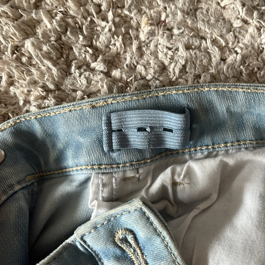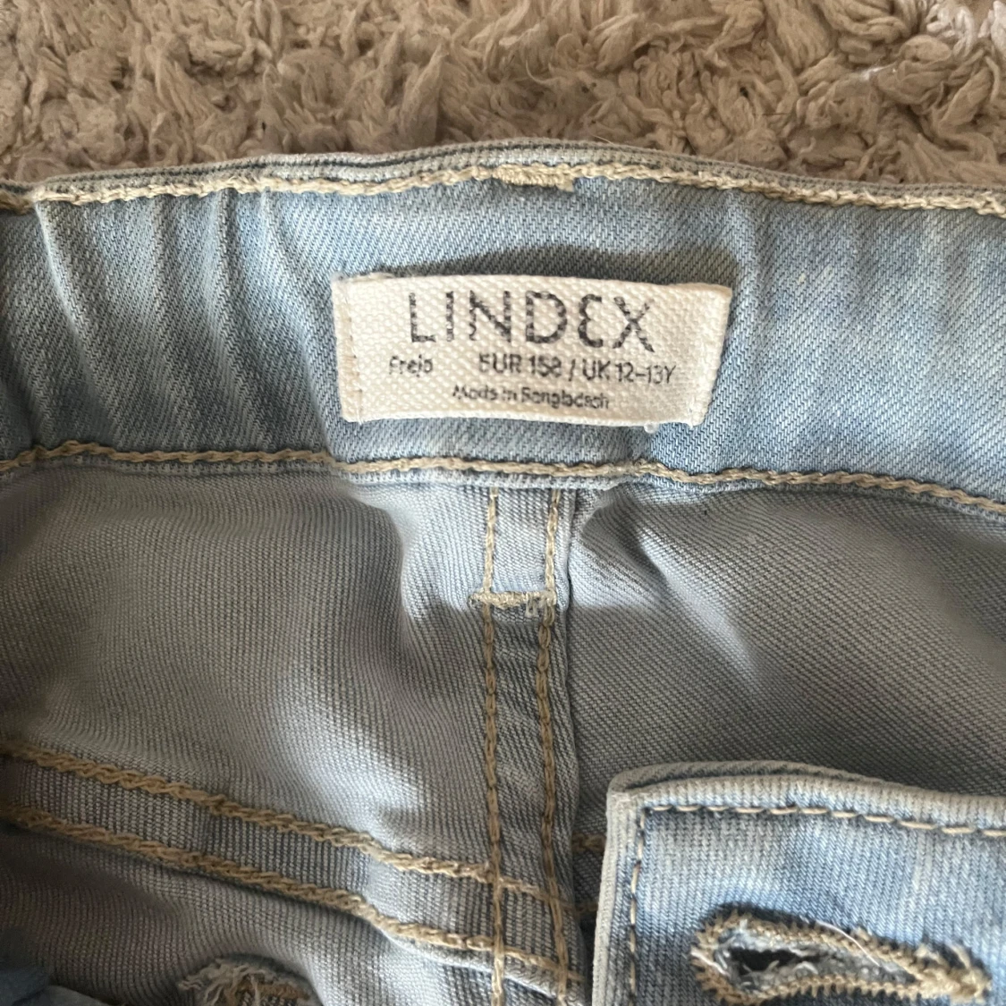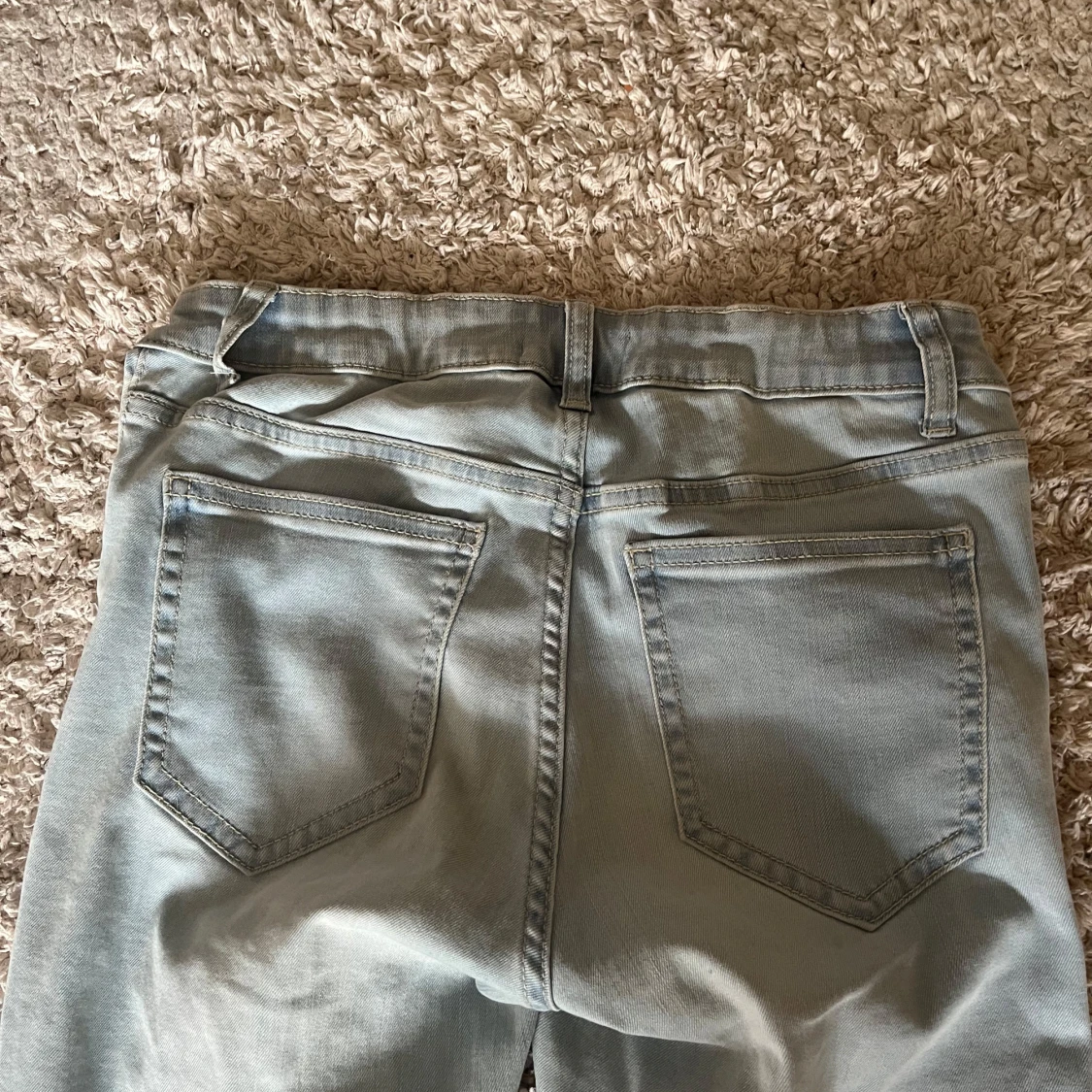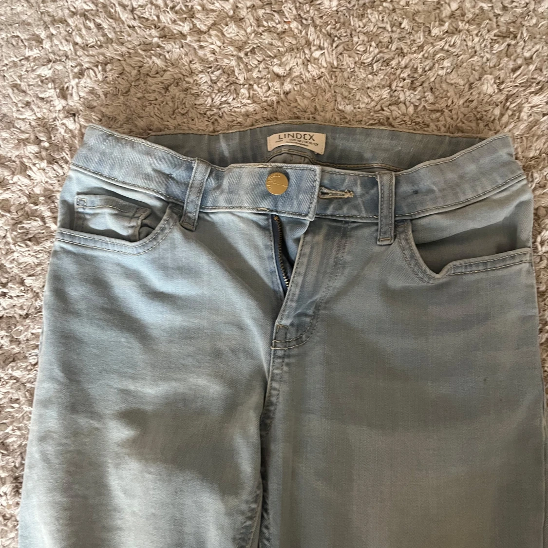 Jättefina ljusblåa bootcut jeans från Lindex! Dom är justerbara i midjan för att kunna passa olika storlekar. Knappt använda och jättefint skick!🫶💕innerben: ca. 74cm