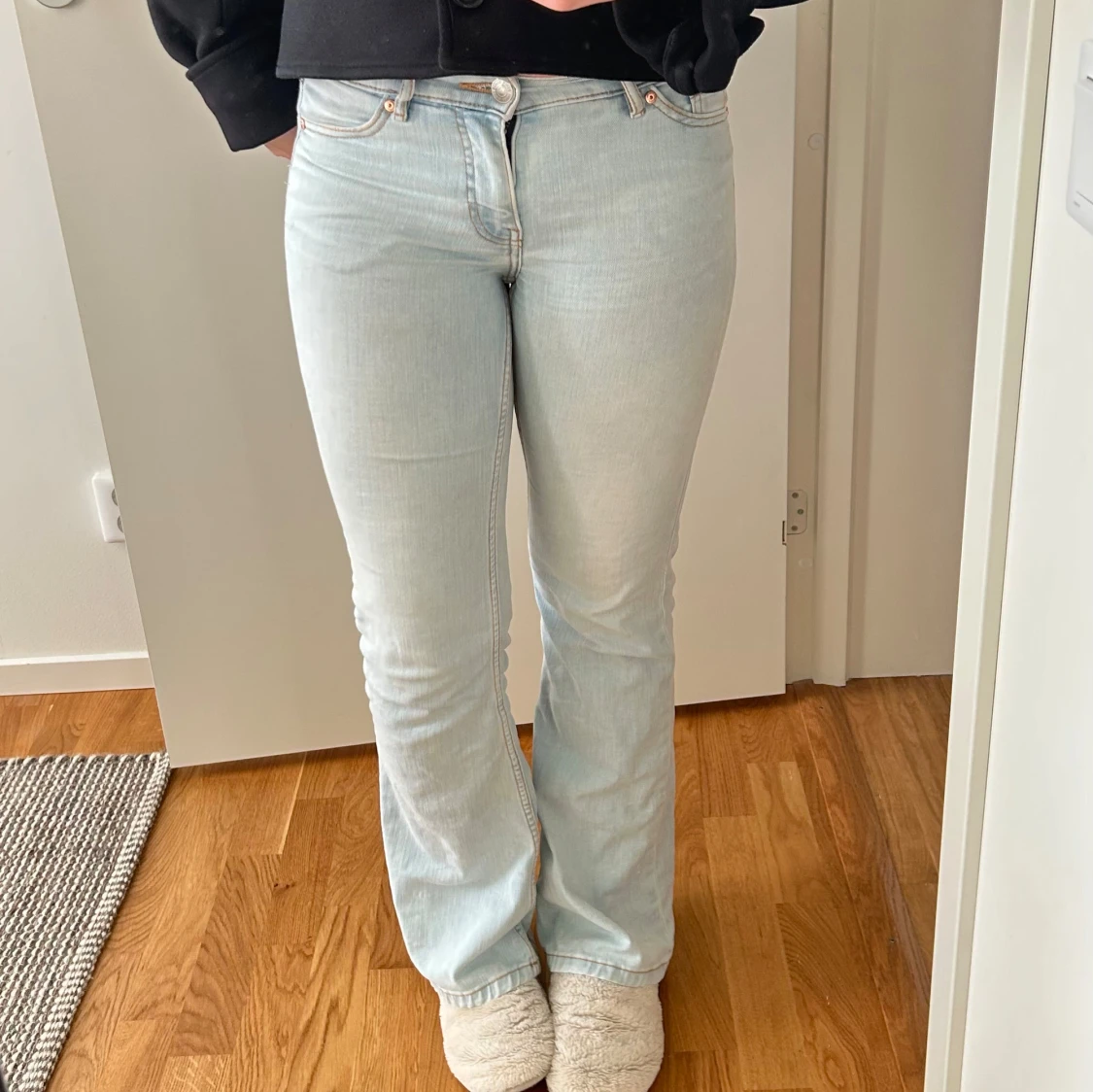 Säljer mina low Waist flare jeans från Kappahl då dem inte kommer till användning. Köpte för 500 men säljs för 350 men 300 vid snabb affär. De är använda men i väldigt bra skick. Tveka inte på att höra av dig vid frågor💕