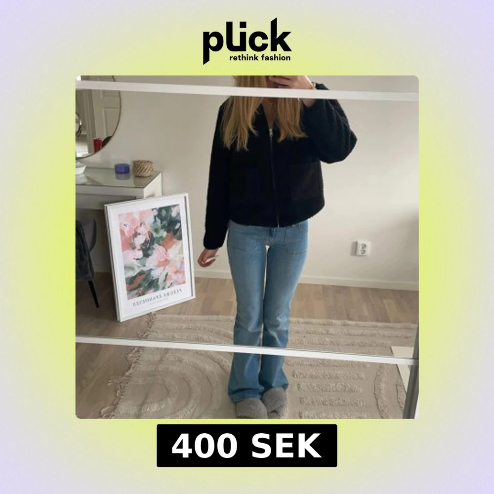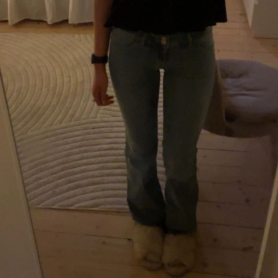 Säljer ett par ljusblå jeans med bootcut-modell och klassisk femficksdesign. Jeansen har normal passform och är tillverkade i mjukt denimtyg som sitter snyggt över höfterna och låren. Perfekta för dig som gillar en tidlös och avslappnad look. Stretchiga i materialet