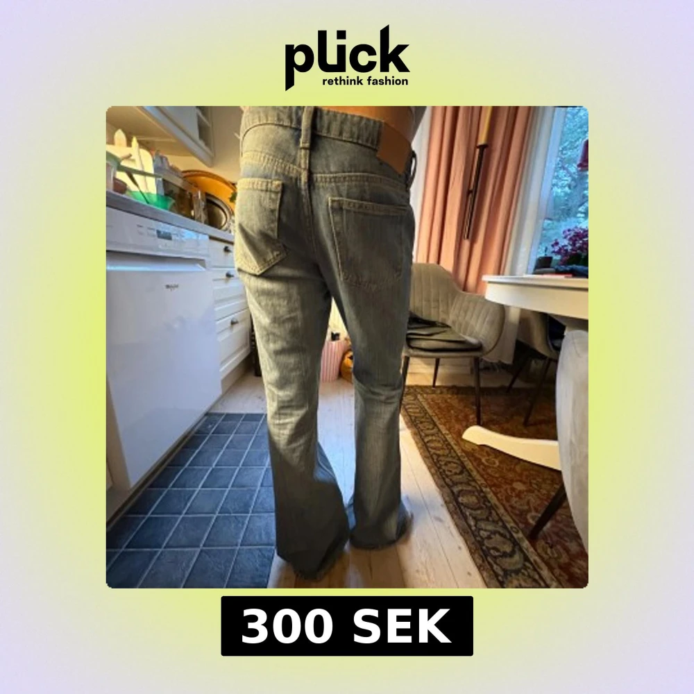 Säljer ett par ljusblå Weekday jeans med klassisk bootcut passform och låg midja. Jeansen är i modellen Nova! är tillverkade i mjukt denim. Perfekt för dig som gillar retrovibe och avslappnad stil.