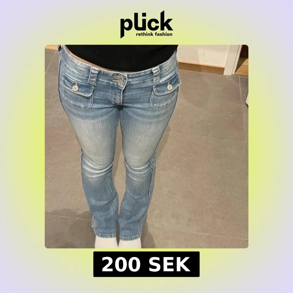 ljusblå jeans från hm med bootcut passform och fickor framtill med knappar.