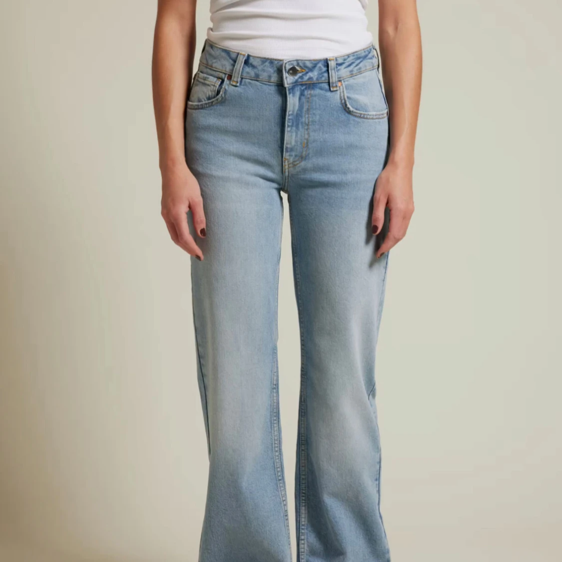 Säljer ett par jätte fina ljusblå low/mid waist jeans från Bik Bok. Jeansen har raka ben och bra material. De sitter perfekta och inte fööör baggy. Perfekta för en trendig look. Köpta för 700kr