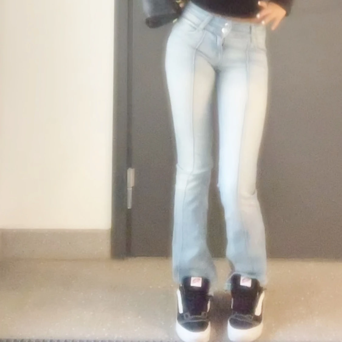 Ljusblå bootcut jeans med hög midja