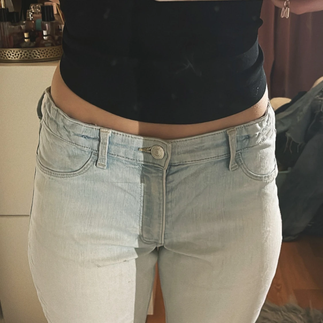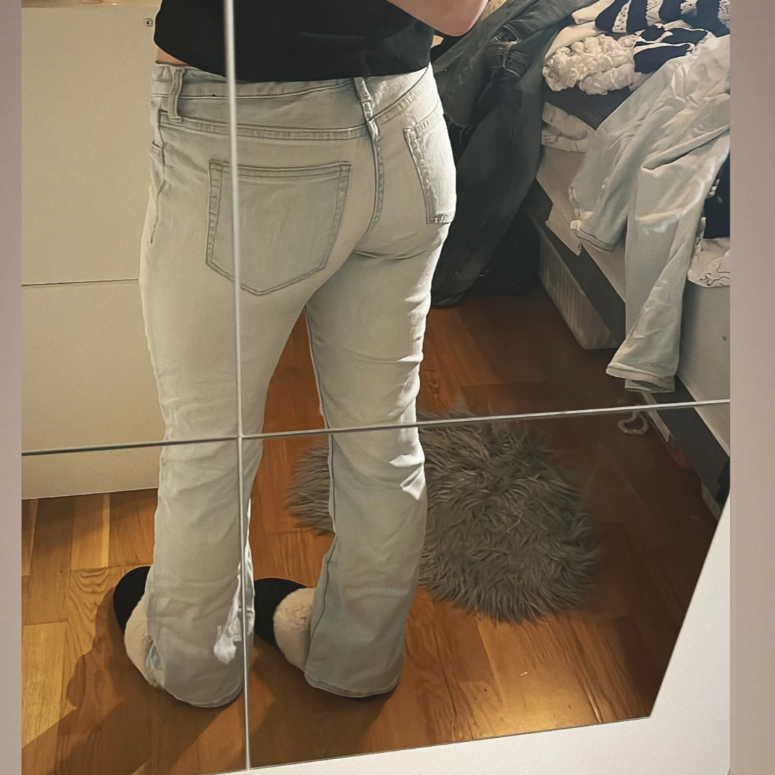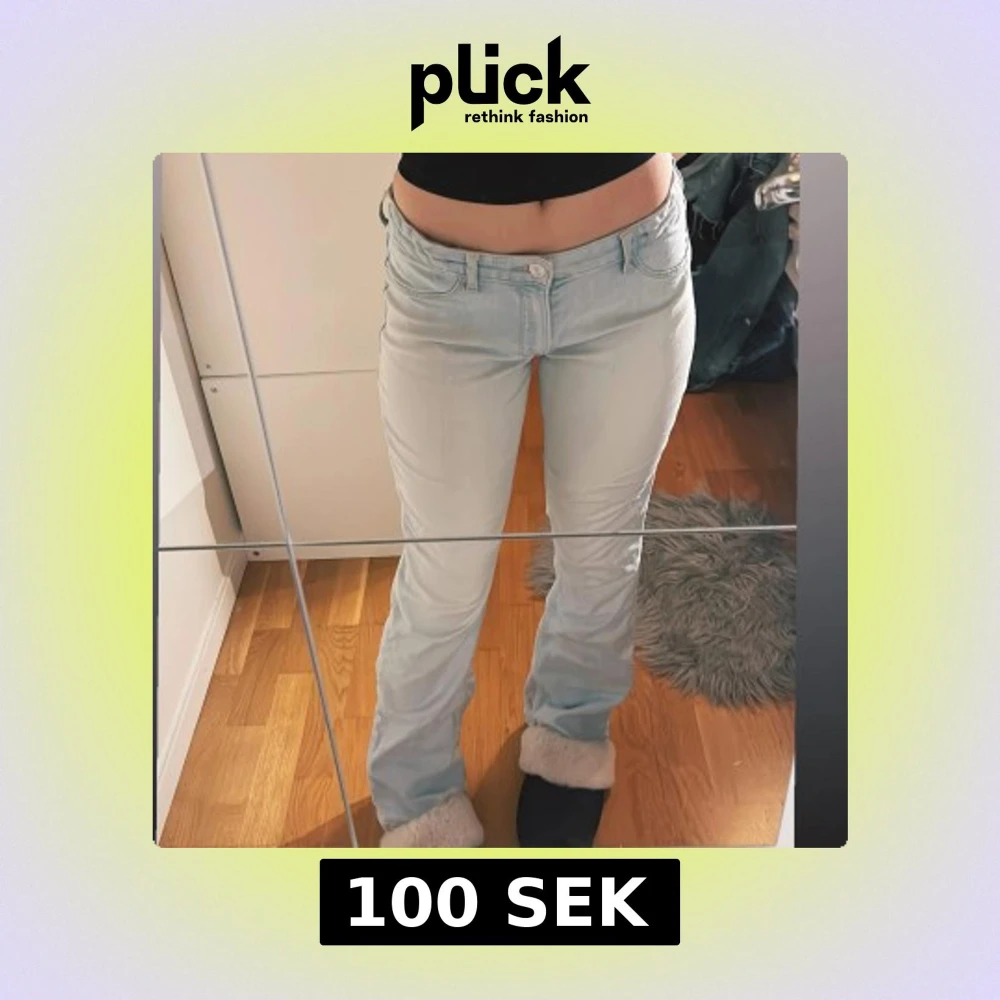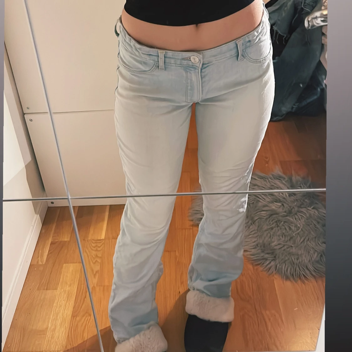 Säljer ett par ljusblå jeans med bootcut-modell och low waist. Jeansen är i strl 158 och passar mig som är xs💓