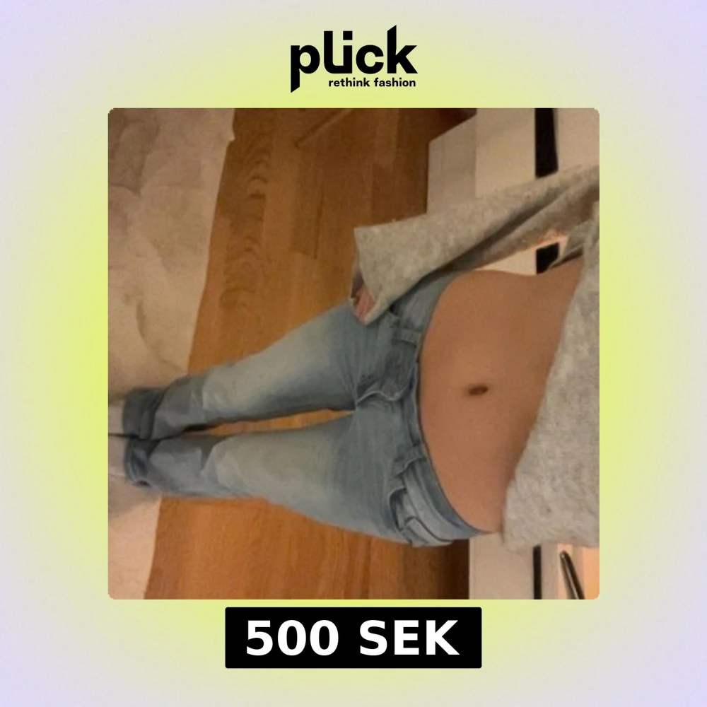 Säljer ett par ljusblå jeans med bootcut passform och snygga röda sömdetaljer på bakfickorna. Jeansen har låg midja och klassisk femficksdesign. Perfekta för dig som gillar en avslappnad och trendig look.
