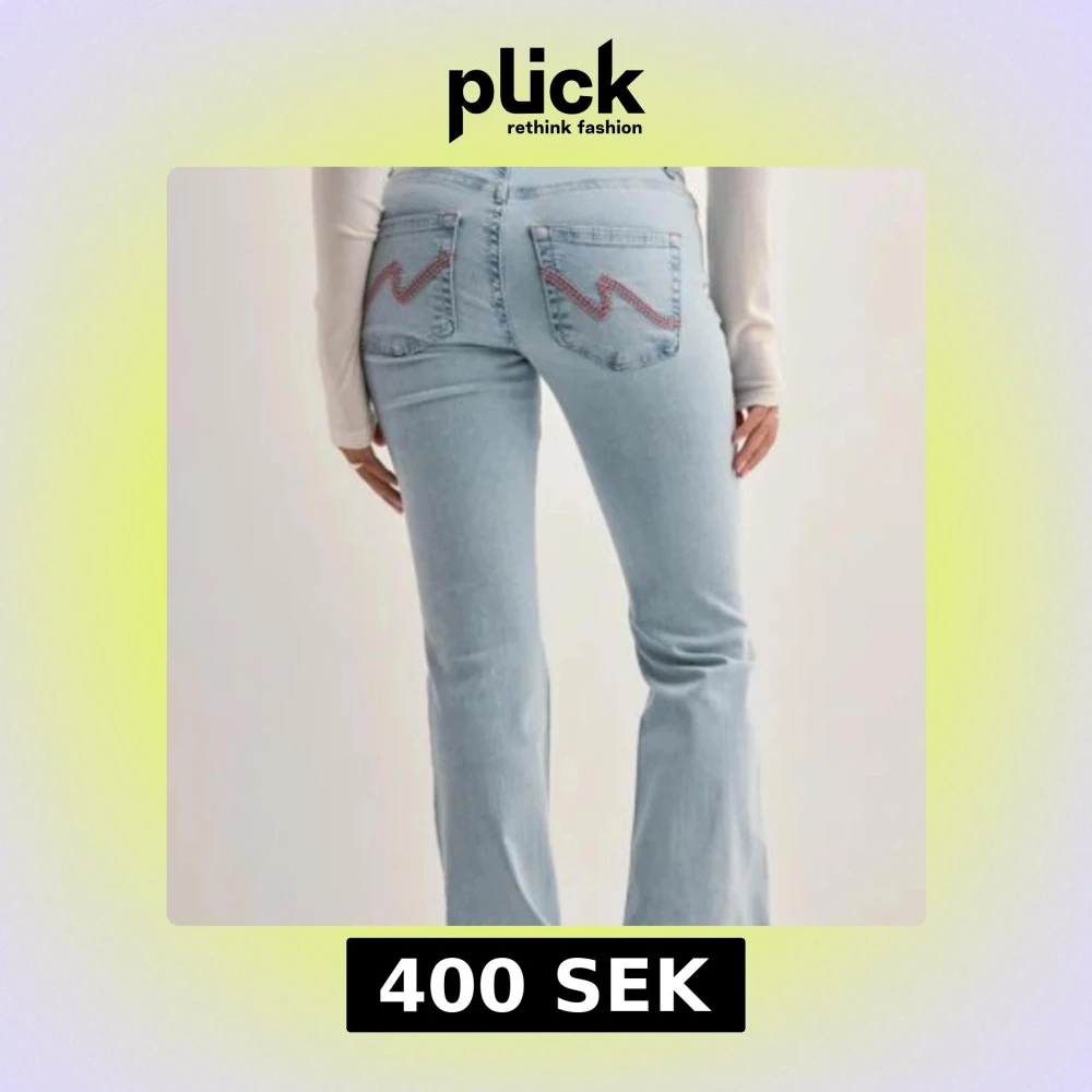 Säljer ett par ljusblå bootcut jeans med slitningar vid knäna och broderad detalj på bakfickorna. Jeansen har klassisk femficksdesign och stängs med dragkedja och knapp. Perfekta för en avslappnad och trendig look. säljer då jag ej använder de längre. Hör av er för egna bilder!😊