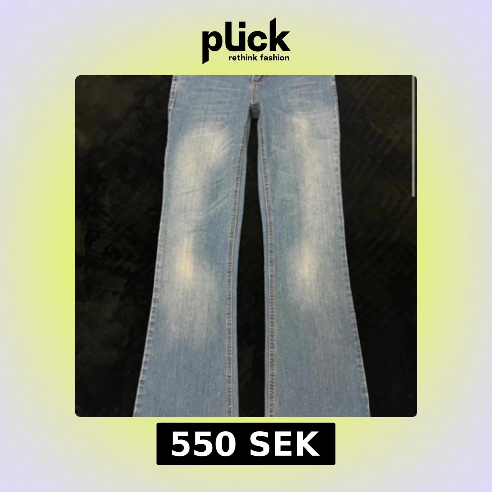 Säljer ett par ljusblå bootcut jeans med snygga slitningar på låren. Jeansen har klassisk femficksdesign, dragkedja och knapp framtill. Materialet är jeans i bomull och passformen är loose med breda ben. Perfekta för dig som gillar retrovibbar och avslappnad stil.