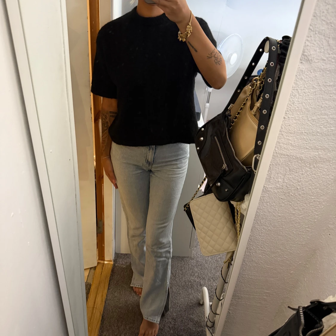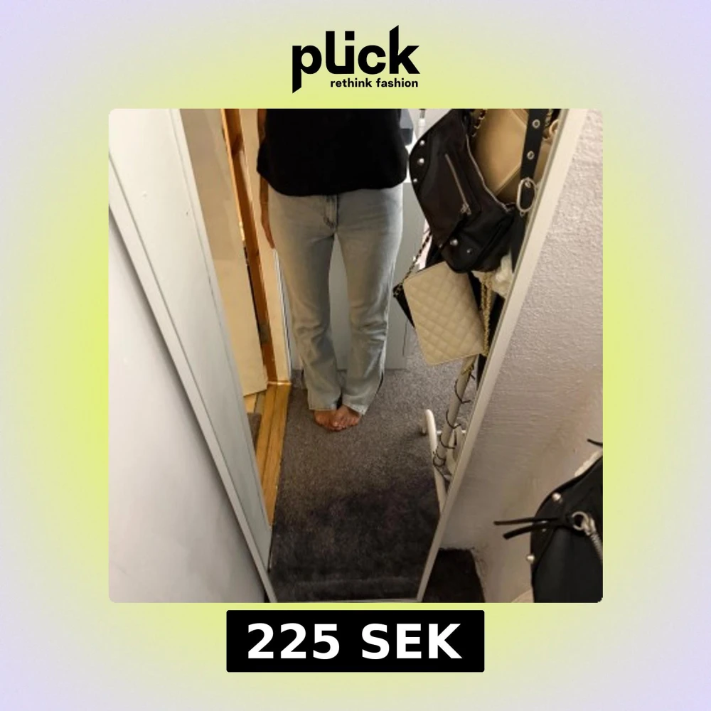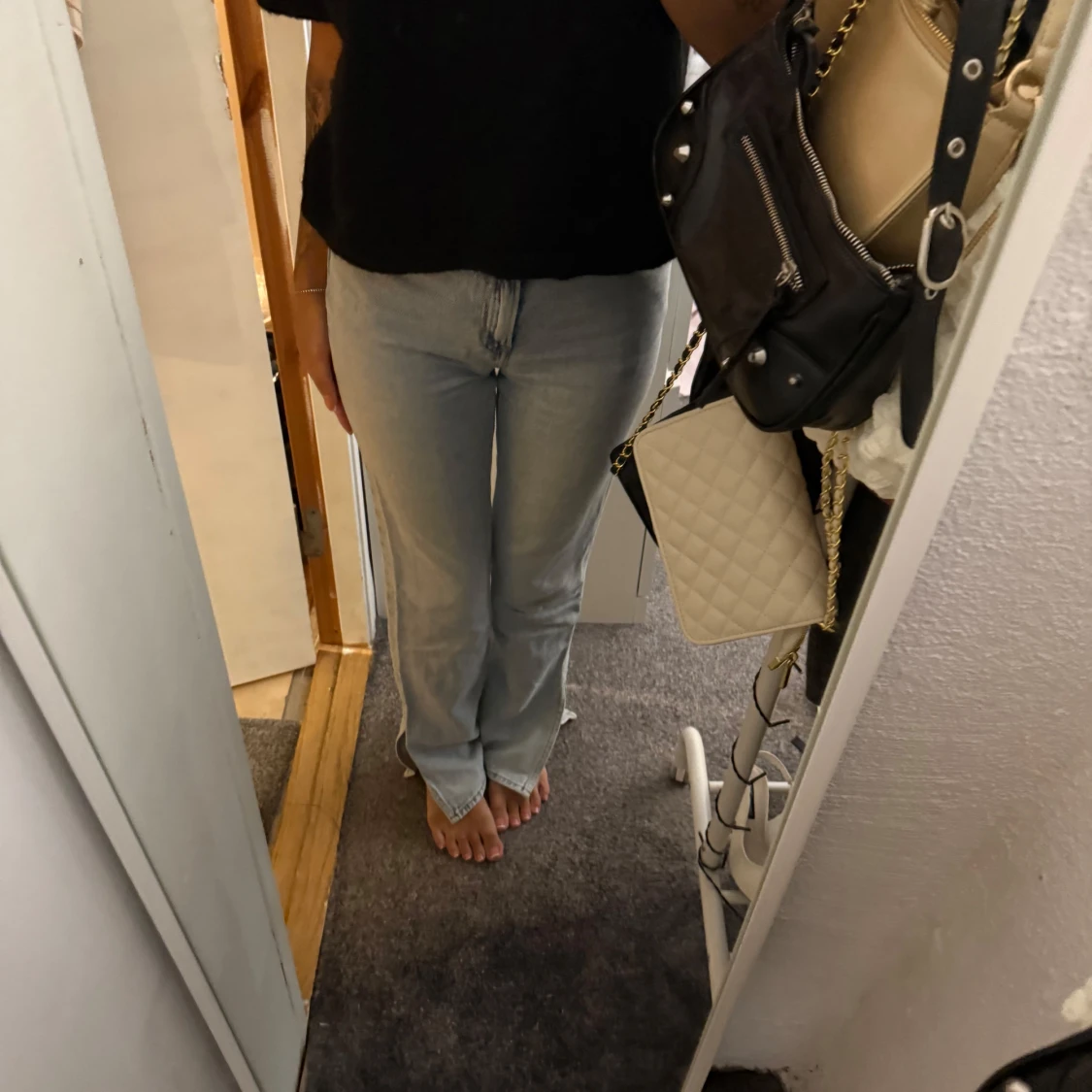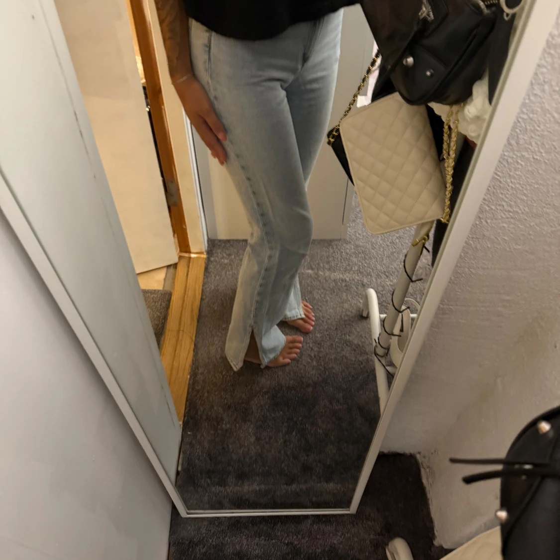 Säljer ett par ljusblå jeans med bootcut passform och snygga slitsar vid bensluten. Jeansen har klassisk femficksdesign, hög midja och är tillverkade i mjukt denimtyg. Perfekta för dig som gillar en chill och trendig look.
