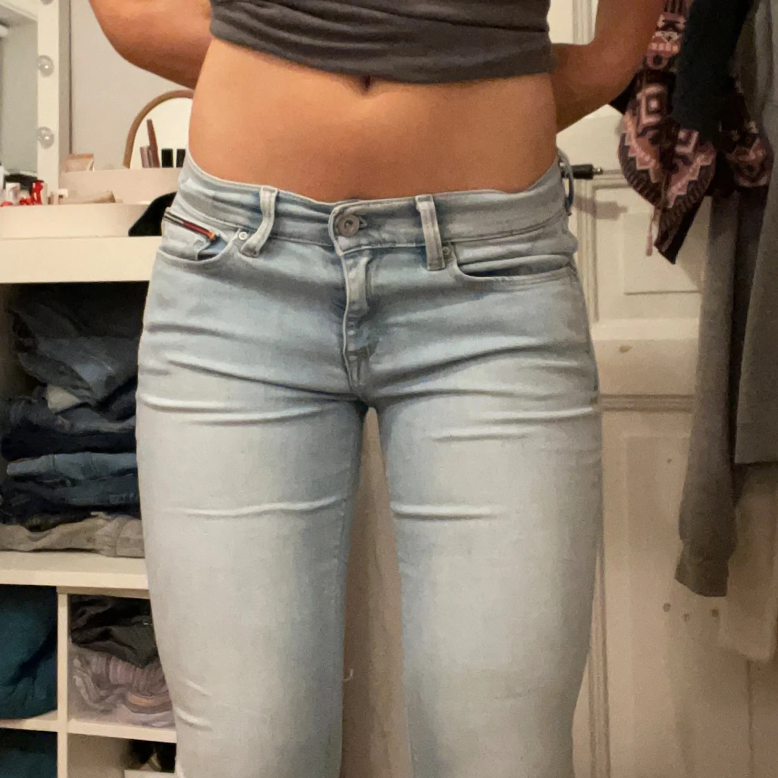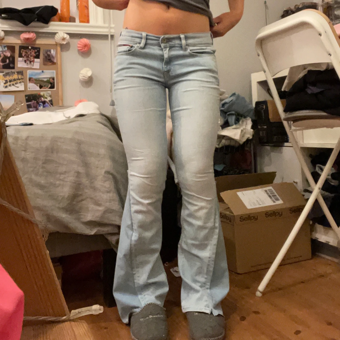Säljer dessa lågmidjade ljusblå jeans. Jeansen är omsydda till bootcut. Midjemått 36 cm tvärs över midajsn och innerbenslämg 78 cm. Jeansen är i ett stretchigt matrial. Kontakta mig privat vid frågor eller liknande, kolla gärna min profil för fler liknande jeans💗💗