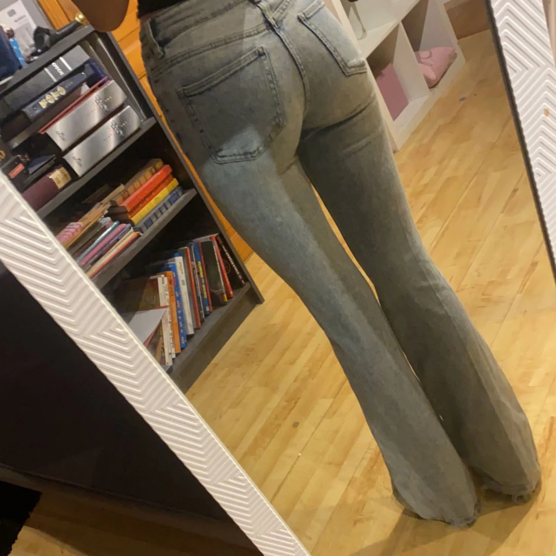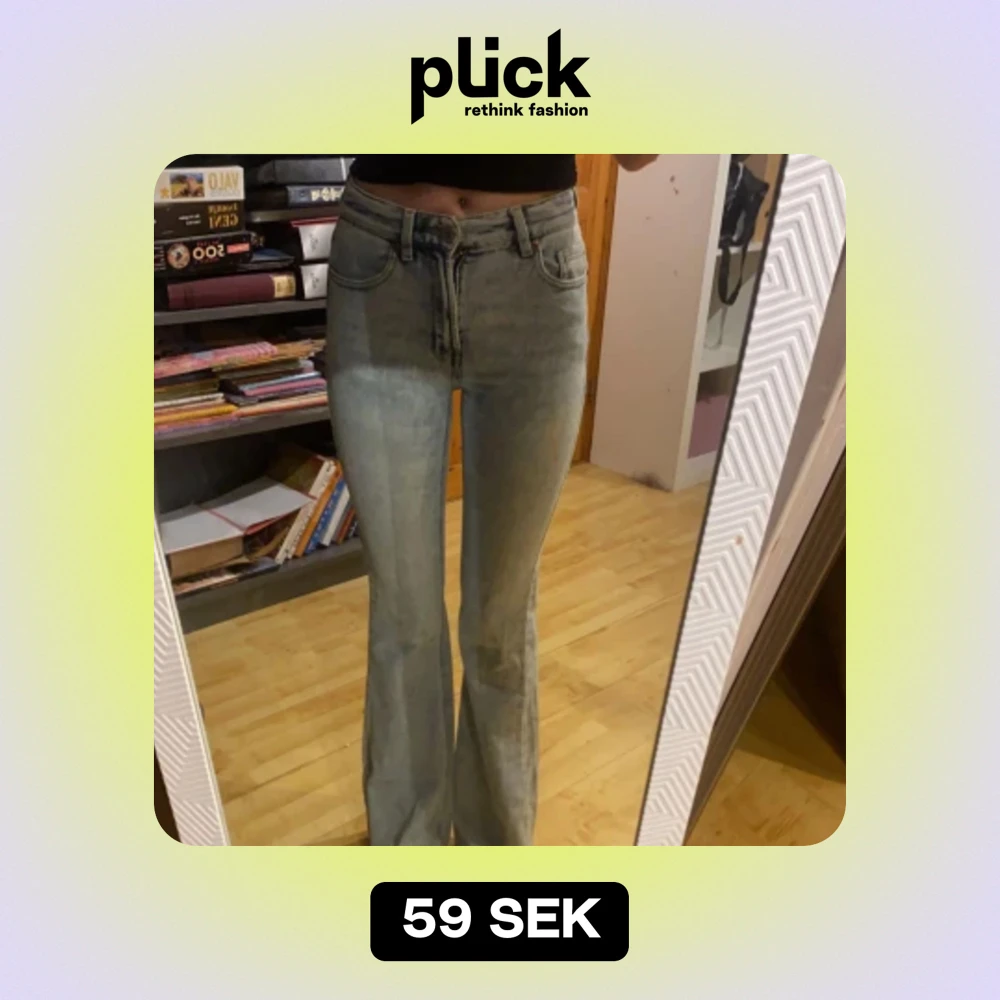 Säljer ett par snygga ljusblå bootcut jeans Perfekta för en avslappnad stil och passar till både vardag och fest.
