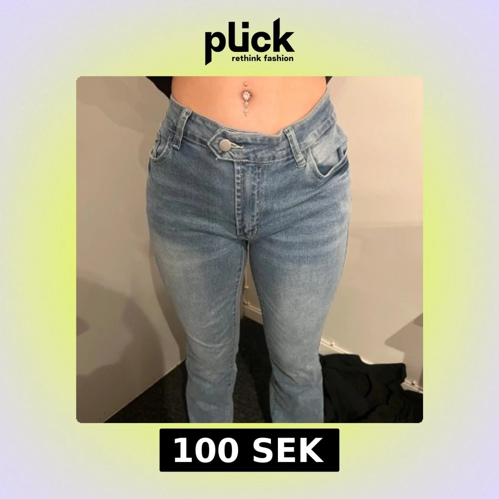 Säljer ett par ljusblå jeans med hög midja och klassisk femficksdesign. Jeansen har raka ben och stängs med dragkedja och knapp. Perfekta till vardags och lätta att matcha med olika toppar.