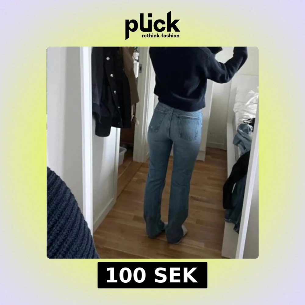 Säljer ett par klassiska jeans i ljusblå tvätt. raka ben med femficksmodell. Tillverkade i slitstarkt bomullsjeans, perfekta för en avslappnad och tidlös look.