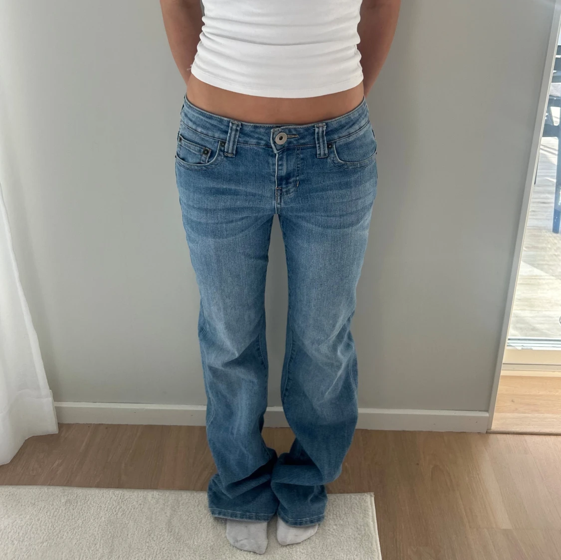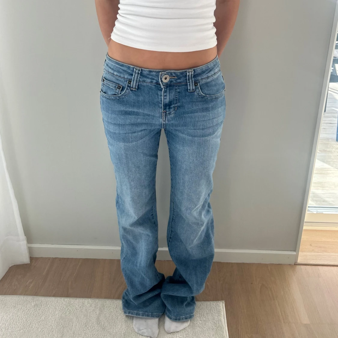 Ljusblå jeans bootcut/vida. Storlek S, Midja: 38x2 cm innerben: 82 cm