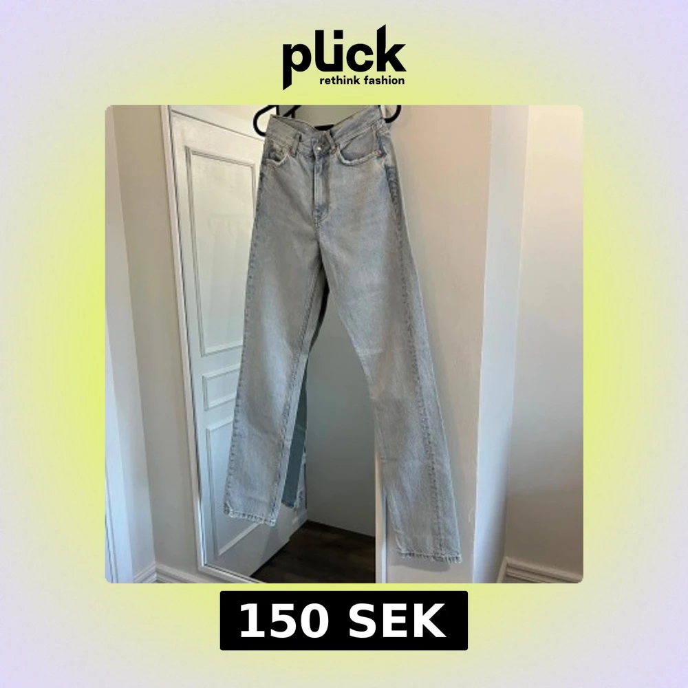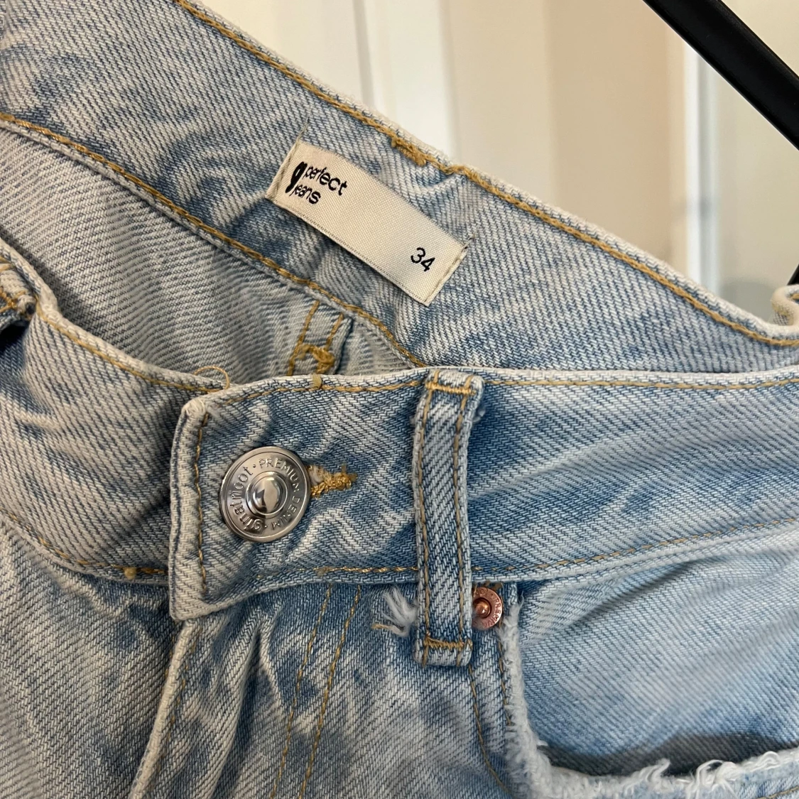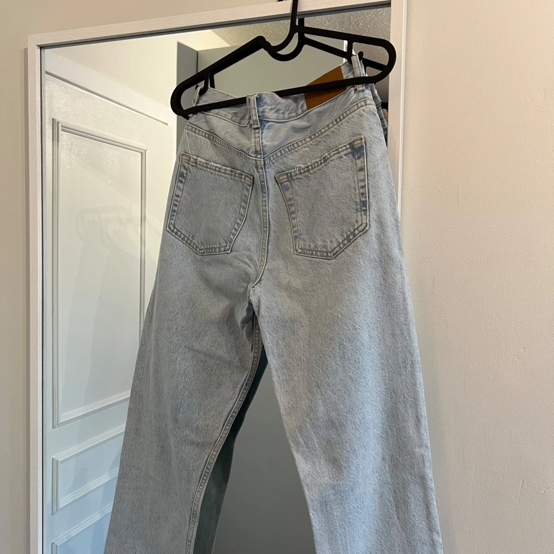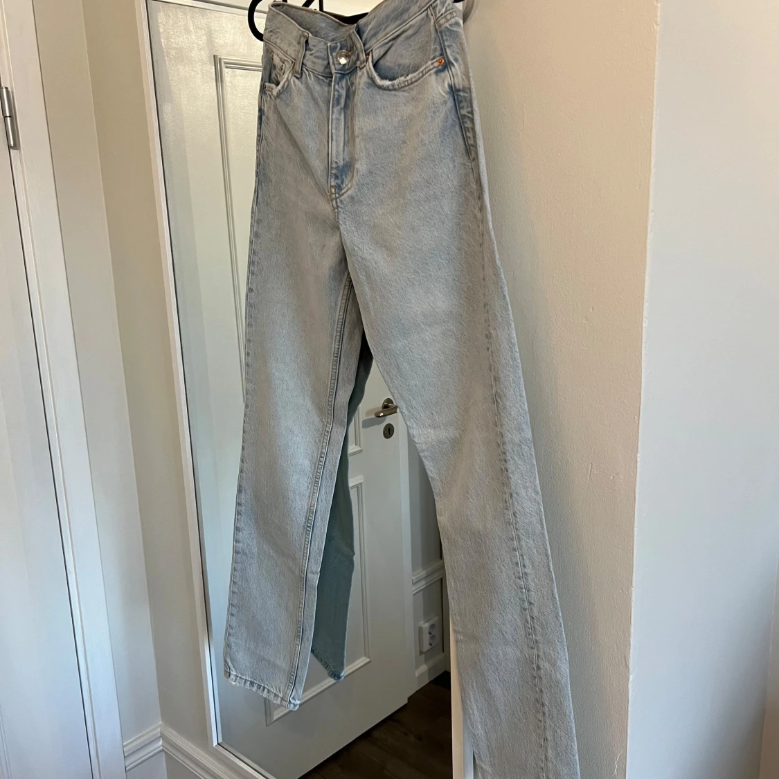 Ljusblå jeans med hög midja. De har en rak passform och är från ginatricot o storlek 34, som nya använda en gång
