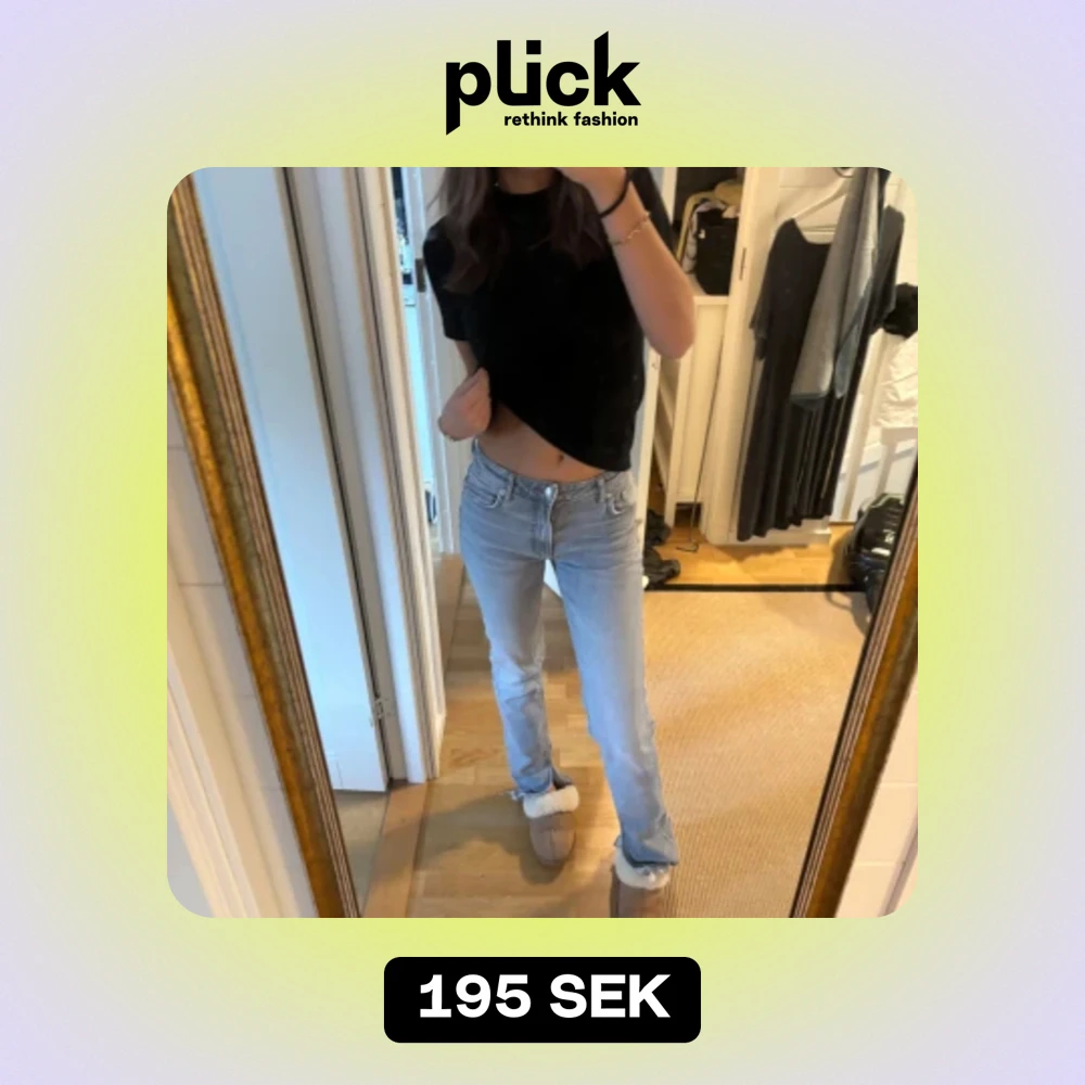 Säljer ett par ljusgråa jeans i en klassisk stil. De är lågmidjade och har en straight passform. Perfekta för vardagsbruk och kan matchas med nästan vad som helst. De är i bra skick och redo för en ny ägare!