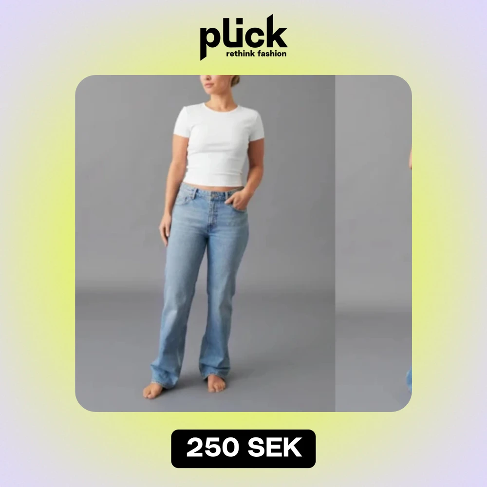 Säljer ett par ljusblå jeans. De är lågmidjade/mid och har en straight passform. Perfekta för både vardag.