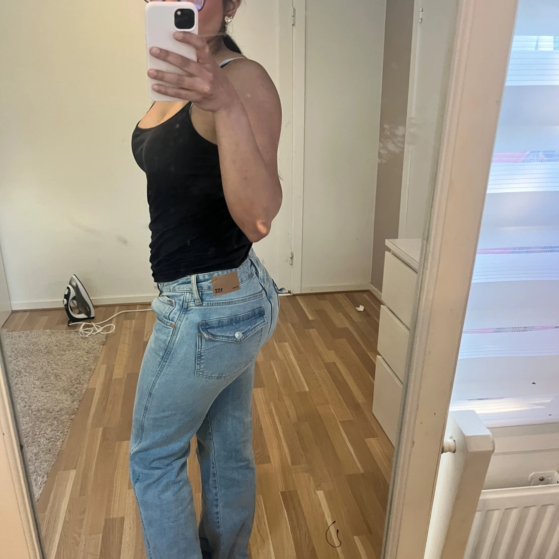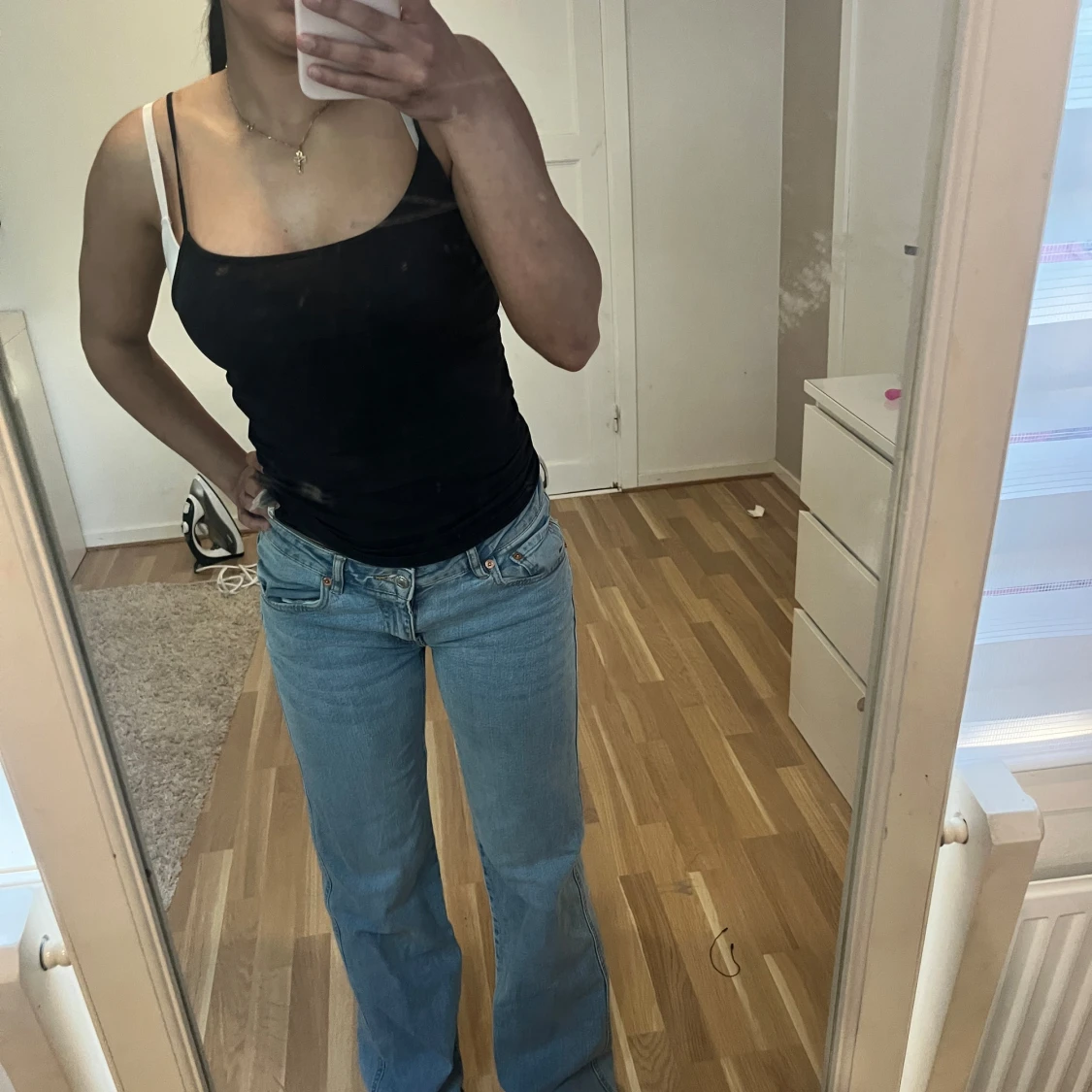 Säljer ett par klassiska utsvängda ljusblå från lager 157 med normal passform. Byxorna har fem fickor, knappgylf och Levis-lapp bak i midjan. Perfekta för dig som gillar en tidlös denimlook.