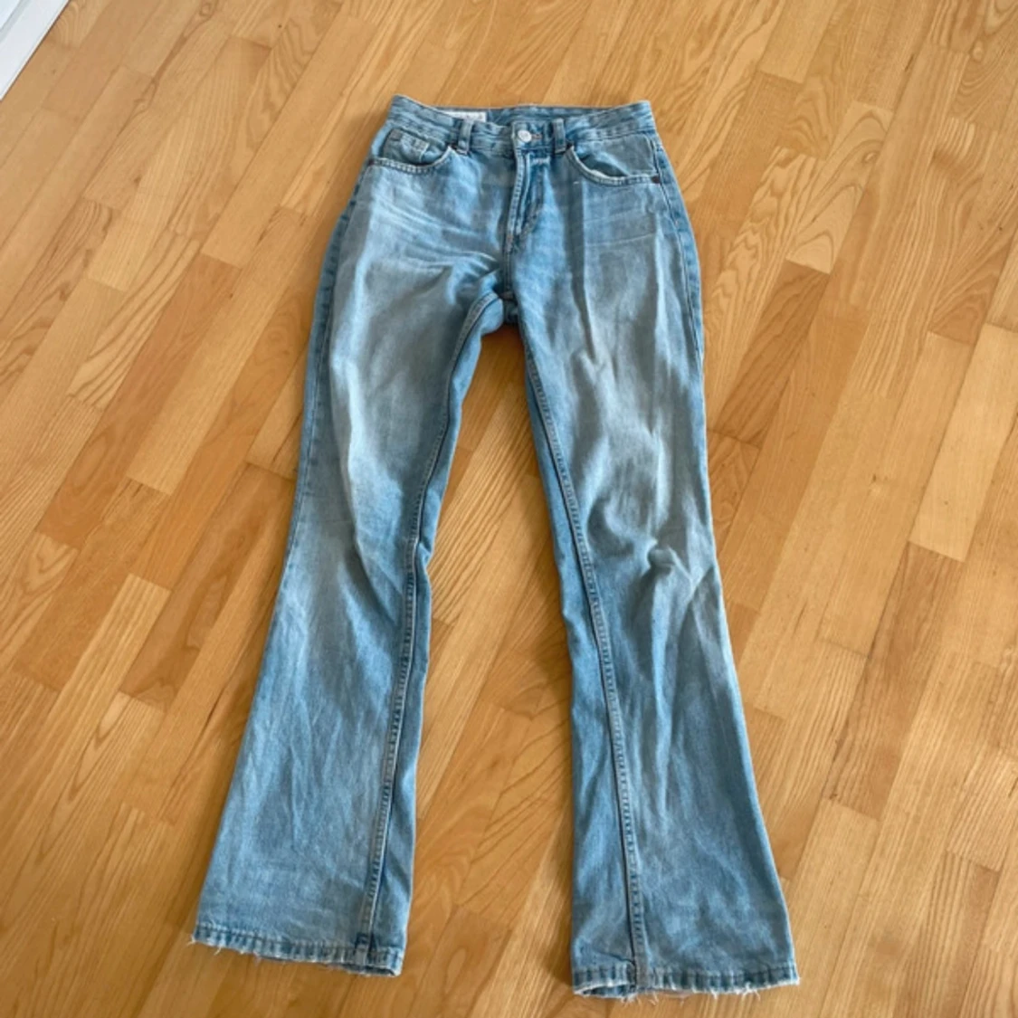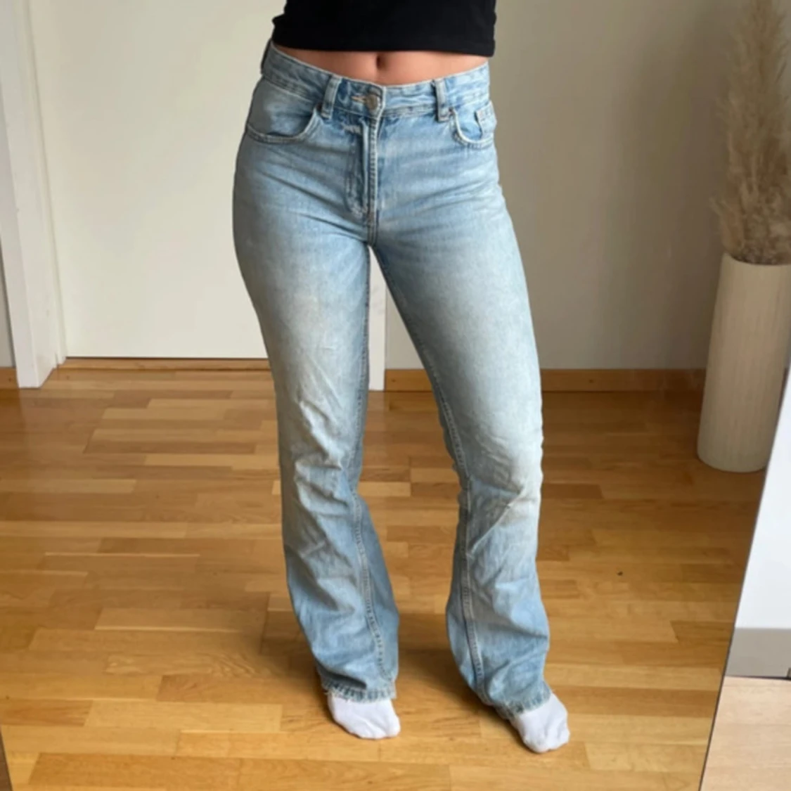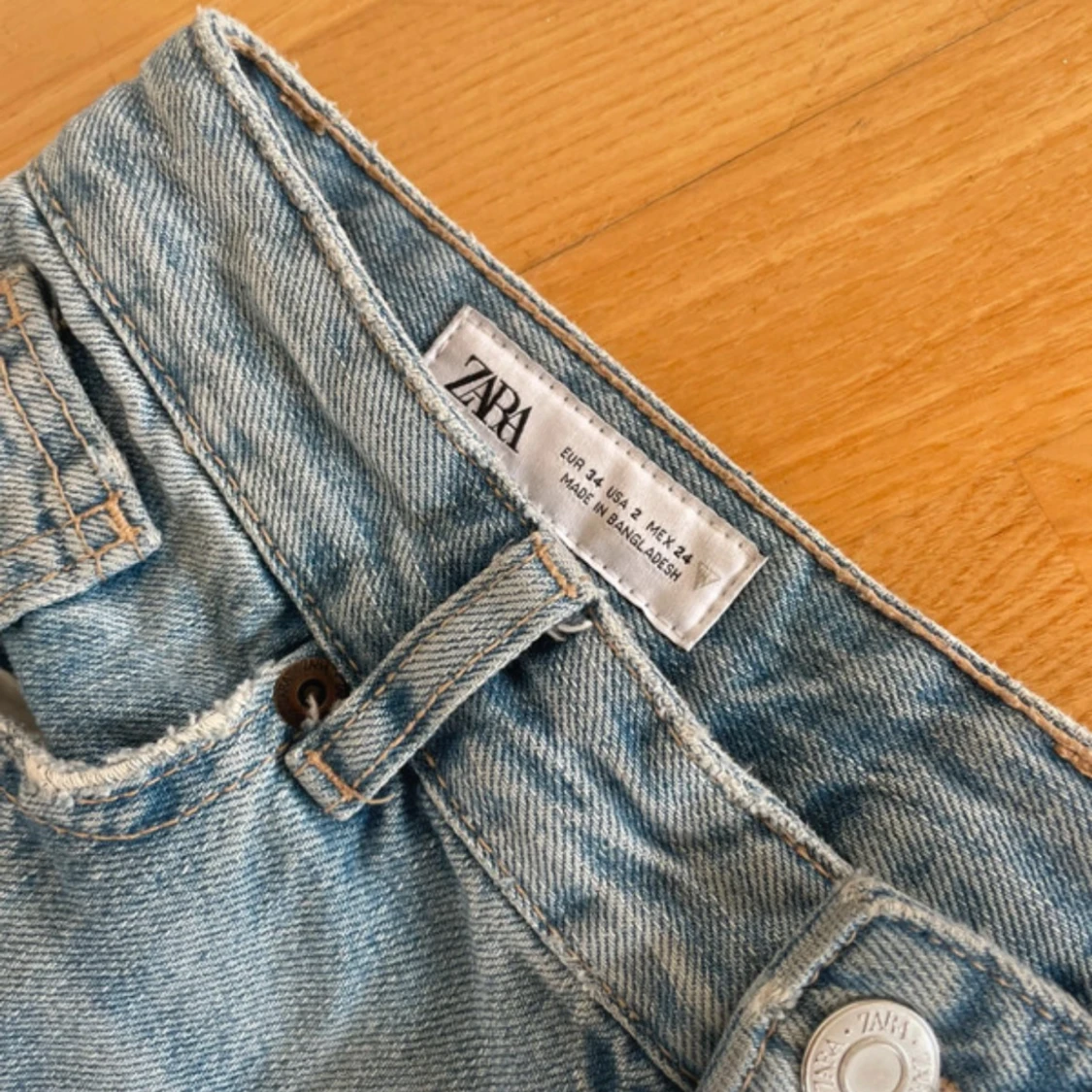 Ljusblå jeans från Zara i storlek 34, jag är 165 och längden är perfekt! 🙌