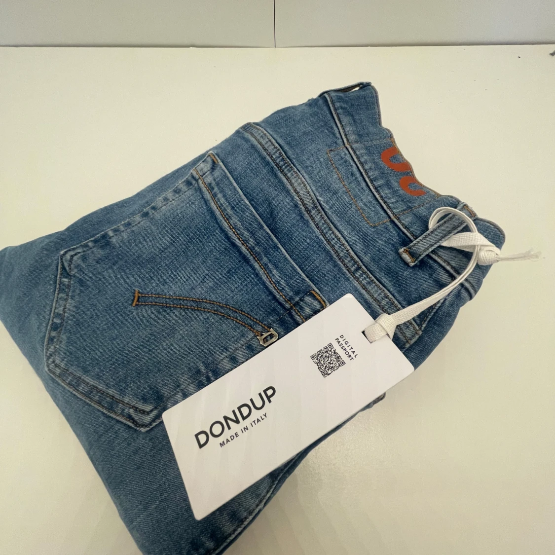 Snygga ljusblå jeans från Dondup i klassisk femficksmodell. Jeansen har en rak passform och är tillverkade i mjukt bomullsjeansmaterial. Perfekta för dig som gillar en stilren och avslappnad look. Märkeslapp bak och snygga detaljer vid fickorna. Nypris 3 000kr