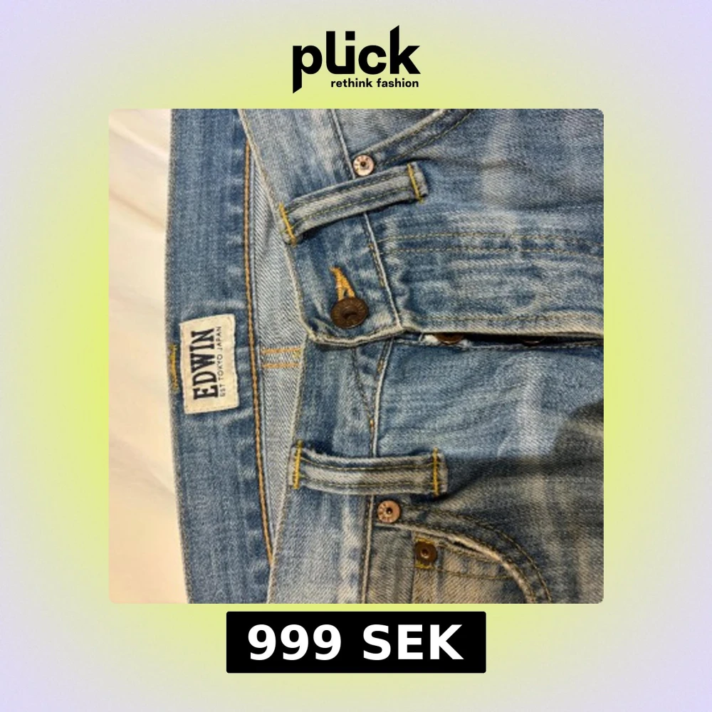 Säljer ett par ljusblå jeans från Edwin med snygga slitningar. Hög kvalité i bra skick och japansk denim. Storlek 32/32