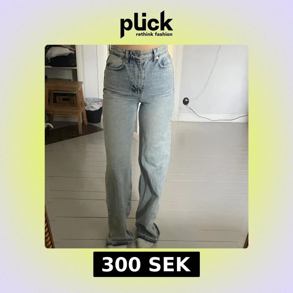 Säljer ett par ljusblå jeans från Gina Perfect Jeans. De har en hög midja, rak passform och är långa i benen. Jeansen är i storlek 34 men passar även mig perfekt som är en storlek 36🥰
