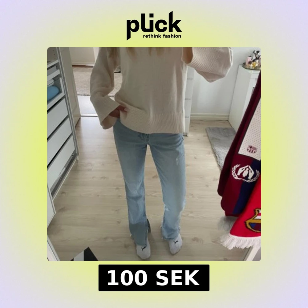 Jättefina ljusblå jeans med slits från Gina Tricot💗. De har hög midja, raka ben och klassisk femficksdesign. Jeansen är i mjuk bomullsdenim och har en snygg, enkel look som passar till allt.💗 Storlek 34