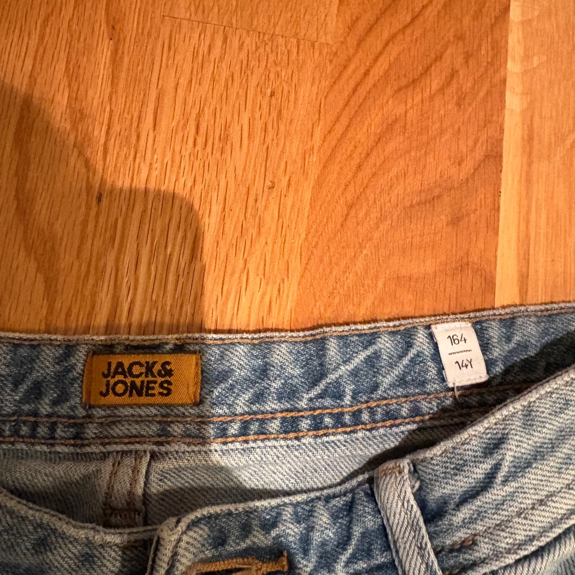 Säljer ett par klassiska ljusblå jeans från Jack & Jones. De har fem fickor, normal passform och raka ben. Perfekta för en avslappnad stil.