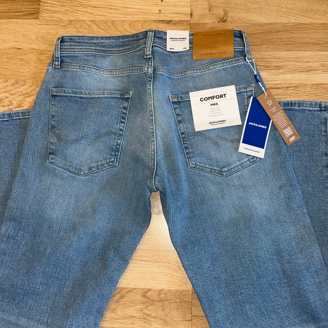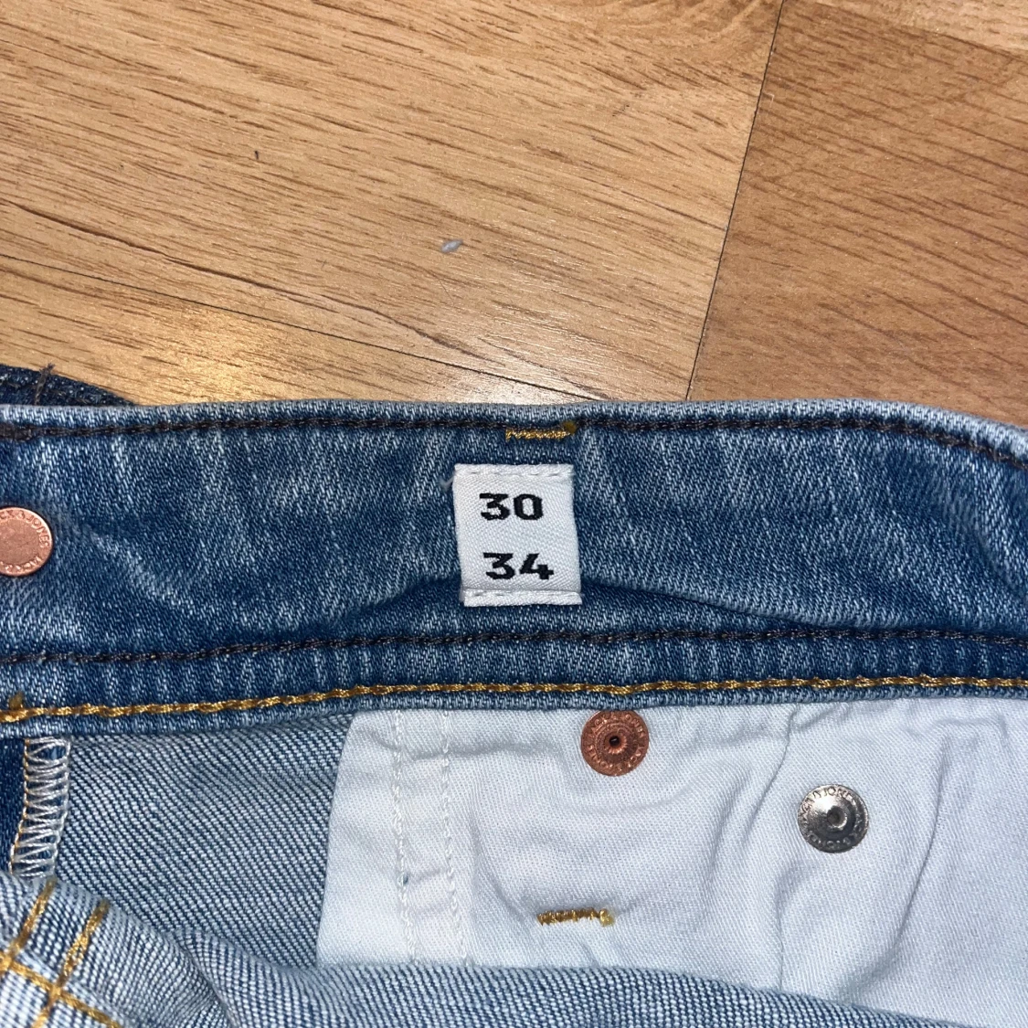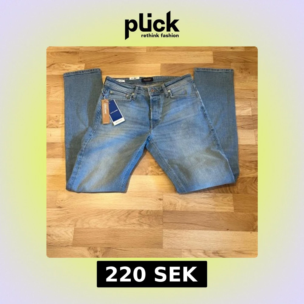Säljer ett par klassiska ljusblå jeans från Jack & Jones med raka ben och femficksmodell. Jeansen har normal passform och är tillverkade i bomull. Perfekta för dig som gillar en enkel och tidlös stil.