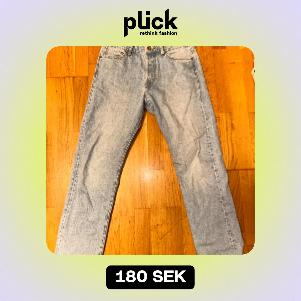 Säljer ett par ljusblå jeans från Jack & Jones i bra skick. De har en klassisk femficksdesign och är tillverkade i slitstarkt denim. Perfekta för vardagsbruk och kan enkelt matchas med olika outfits. Passformen är straight och de har en midwaist design.