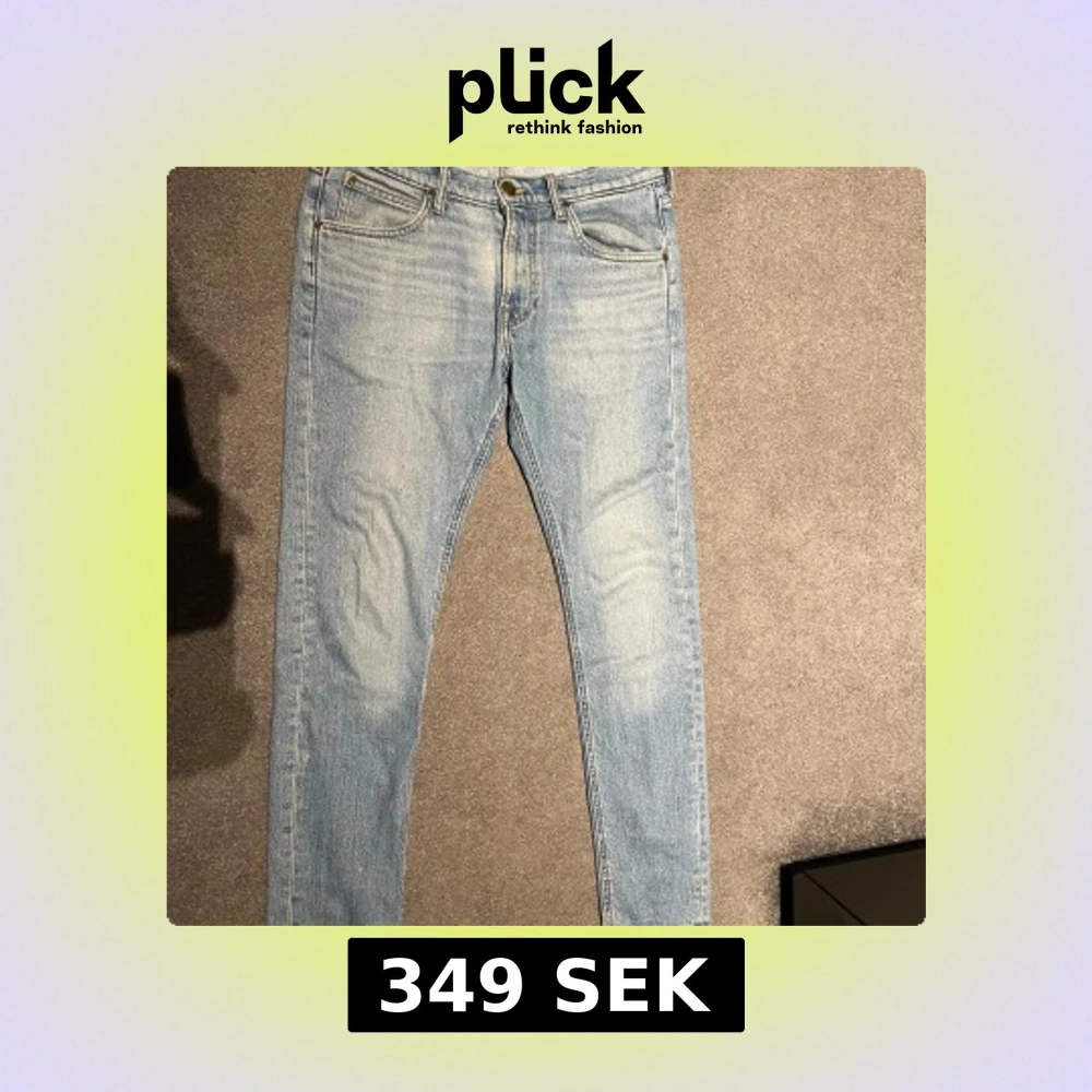 Säljer ett par ljusblå skinny jeans från Lee med klassisk femficksdesign och Lee-logga på bakfickan och knapp. Jeansen är 30-32 eller 29-32