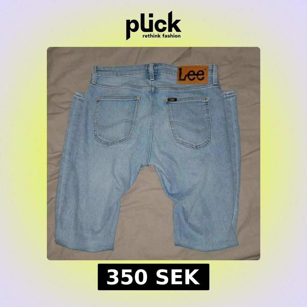 Säljer ett par ljusblå jeans från Lee med klassisk femficksdesign, Lee-logga på bakfickan och läderpatch i midjan. Shortsen har normal passform, knapp och dragkedja framtill samt bälteshällor.