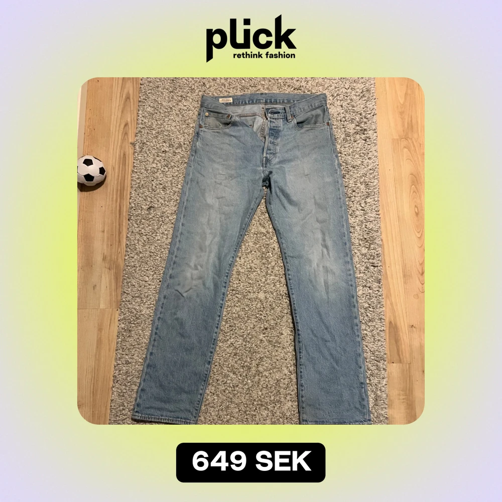 Säljer ett par ljusblå Levi's jeans i bra skick. De har en klassisk straight passform och är perfekta för vardagsbruk. Jeansen har en knappgylf och fem fickor. Perfekta för både vår och sommar! 🌞